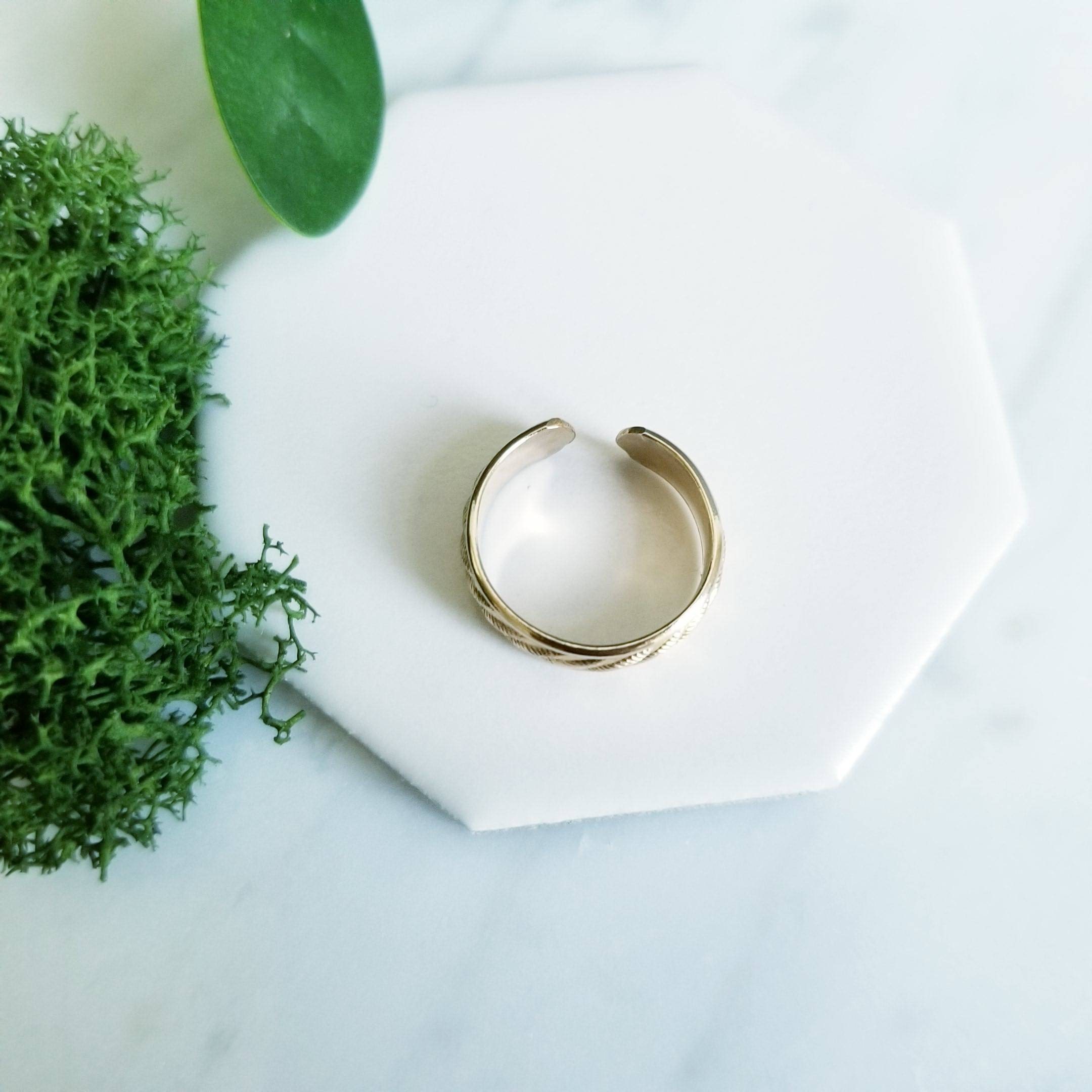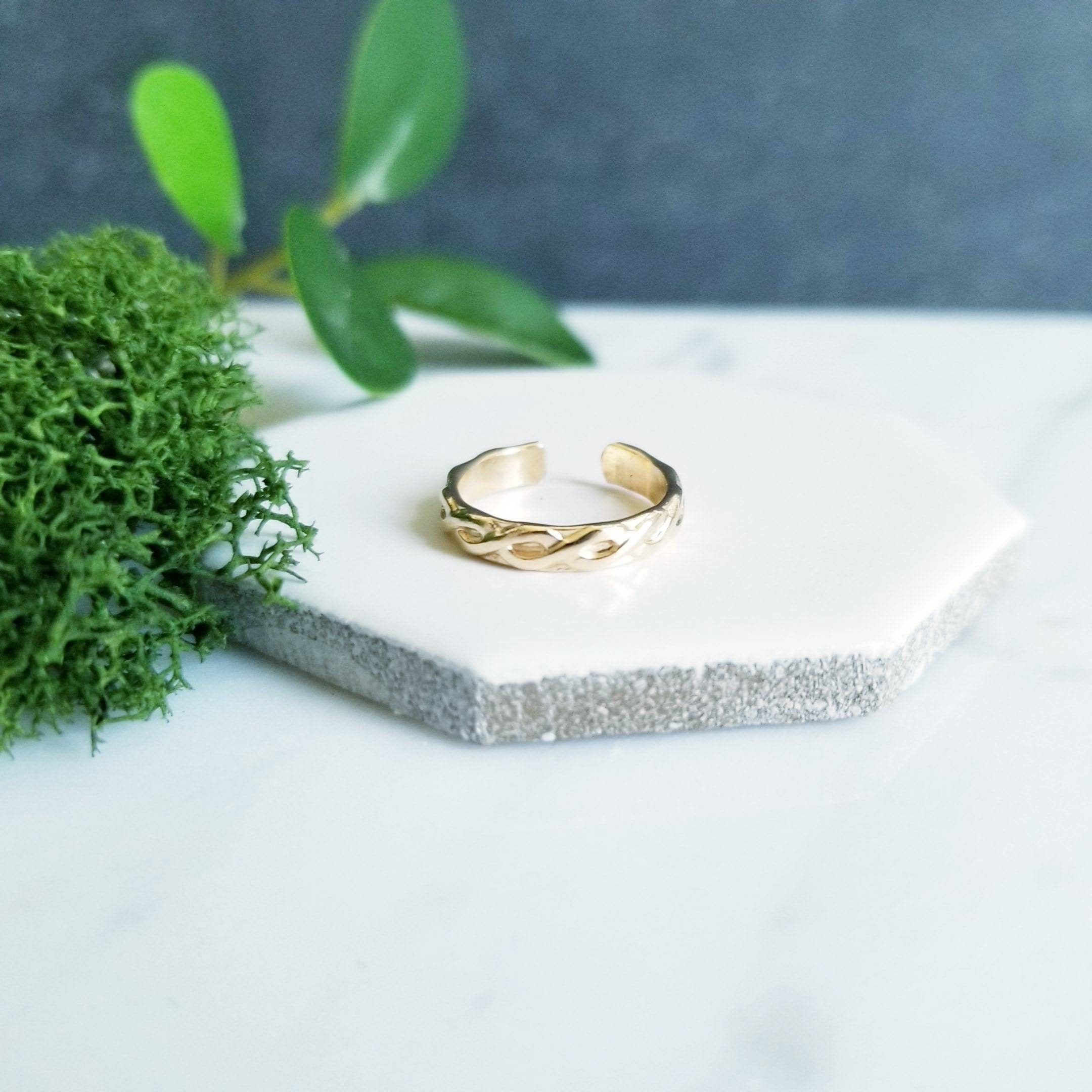 A twist pattern golden toe ring, 14K Gold Fill wire in a 3mm twist patterned wire.