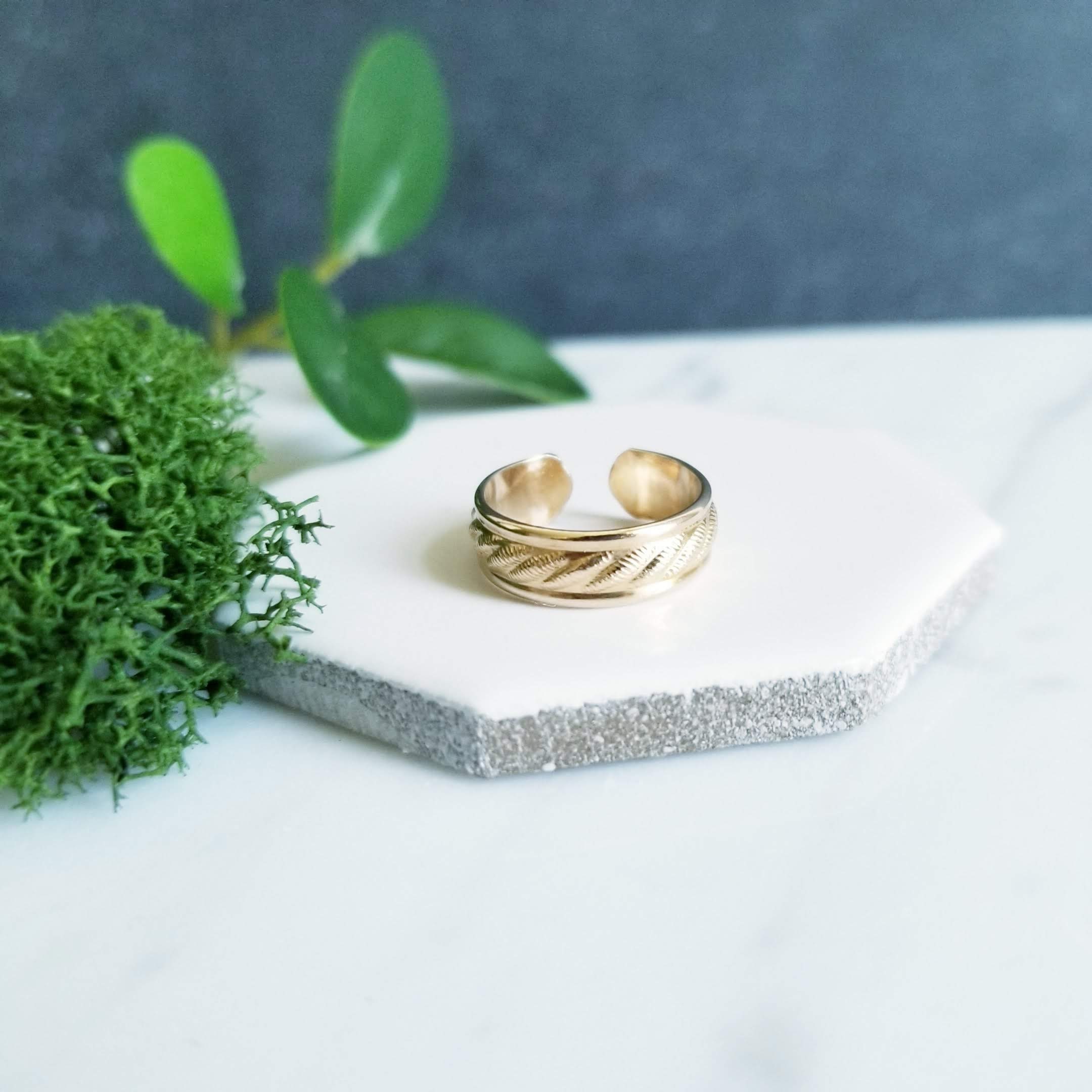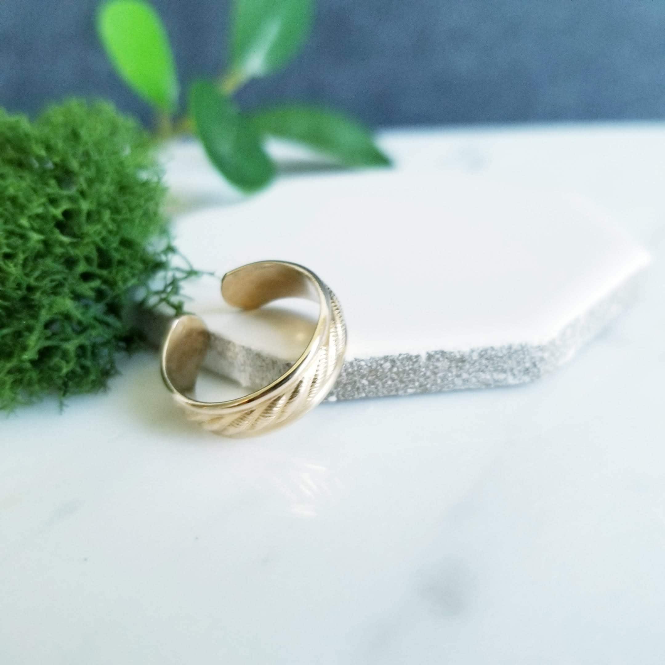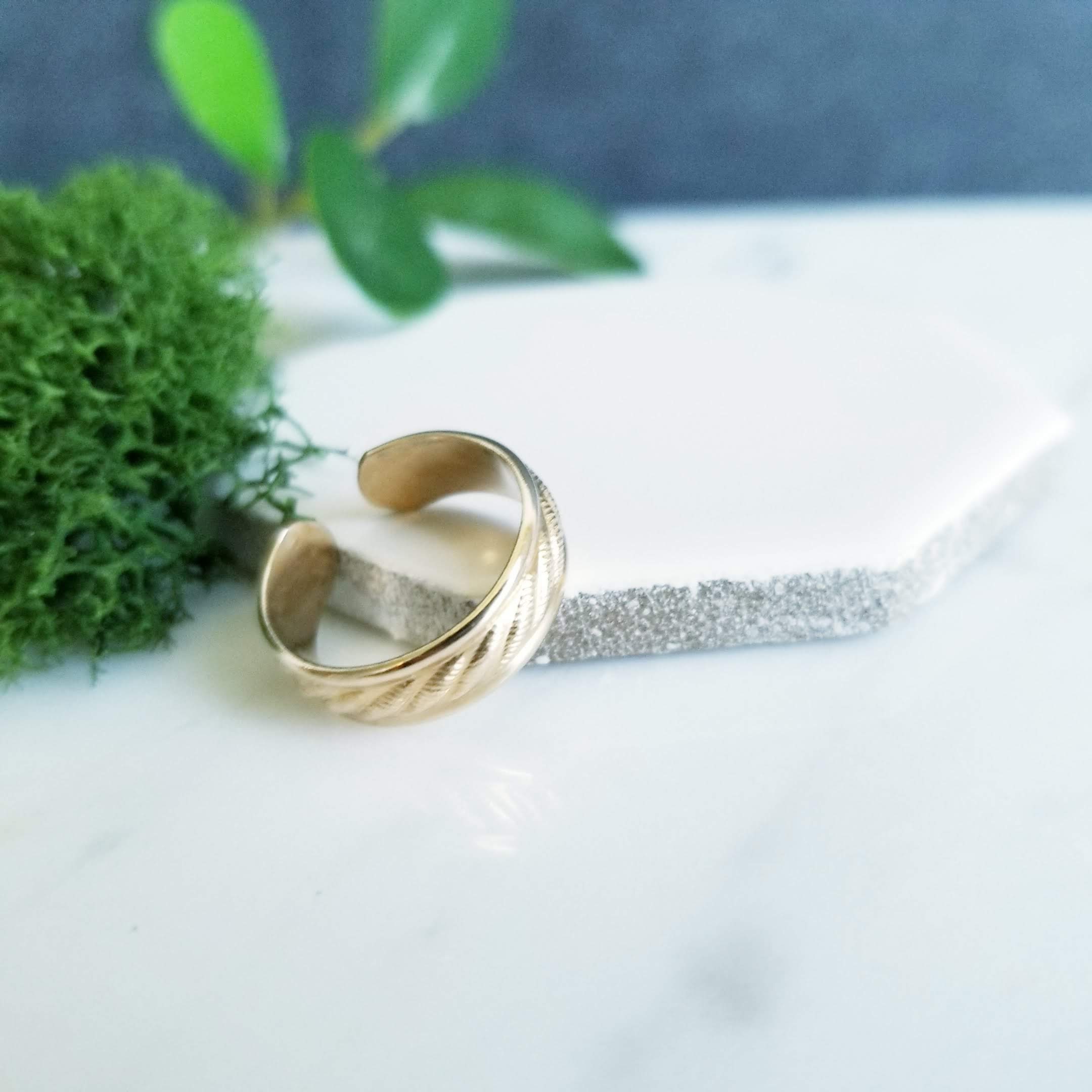 14k Yellow Gold Filled Twist Pattern Toe ring, 5mm wide. In Yellow Gold Filled, twist embossed foot bling.