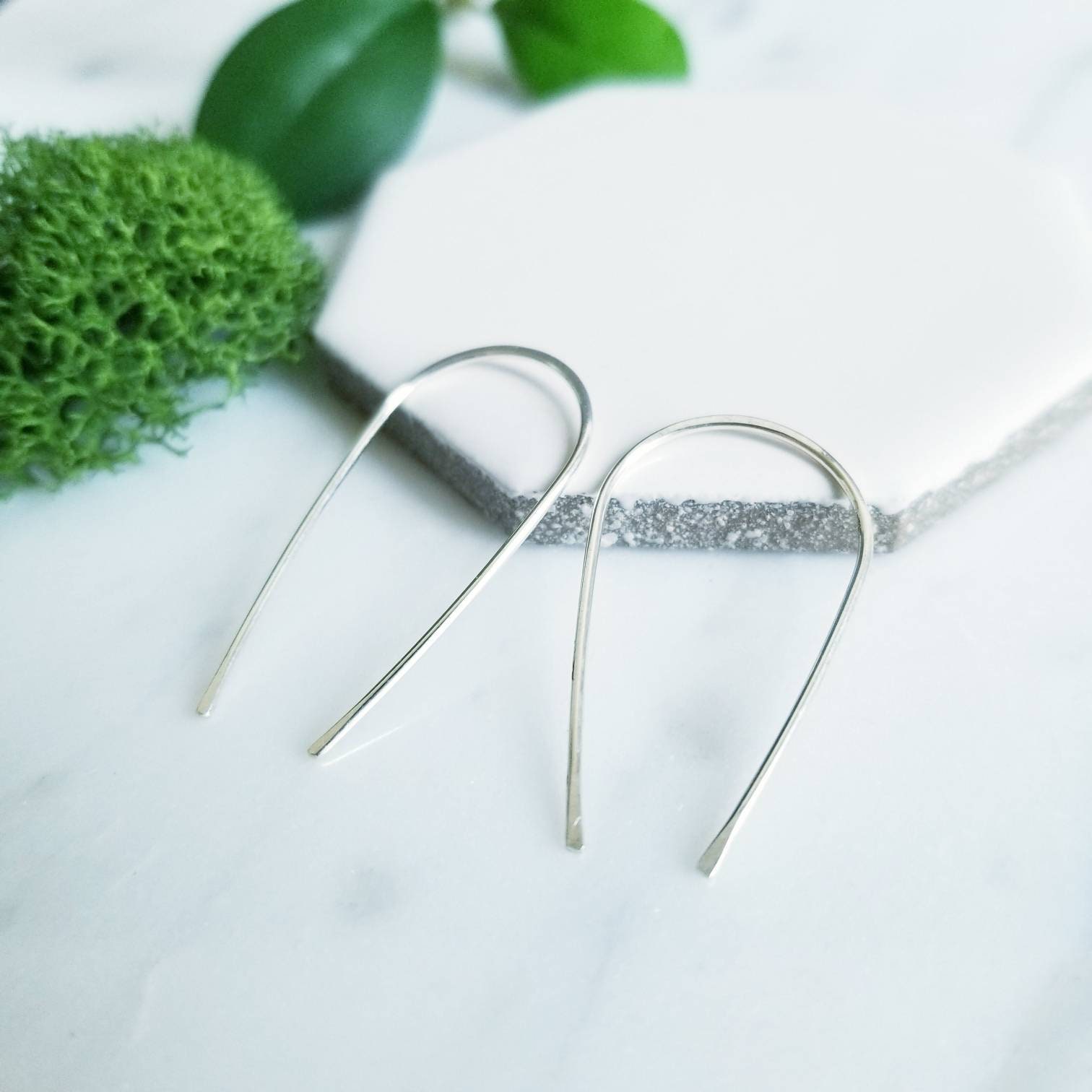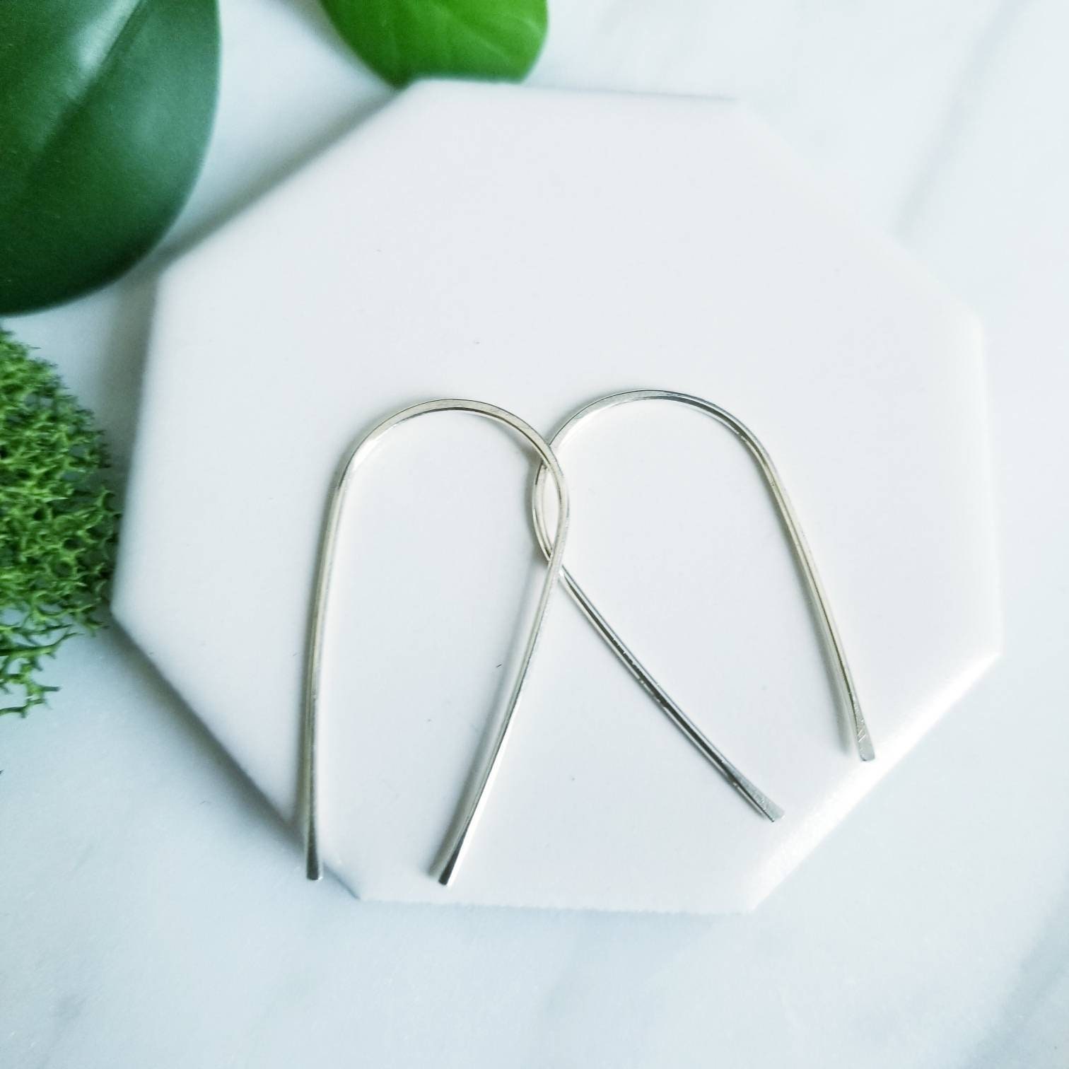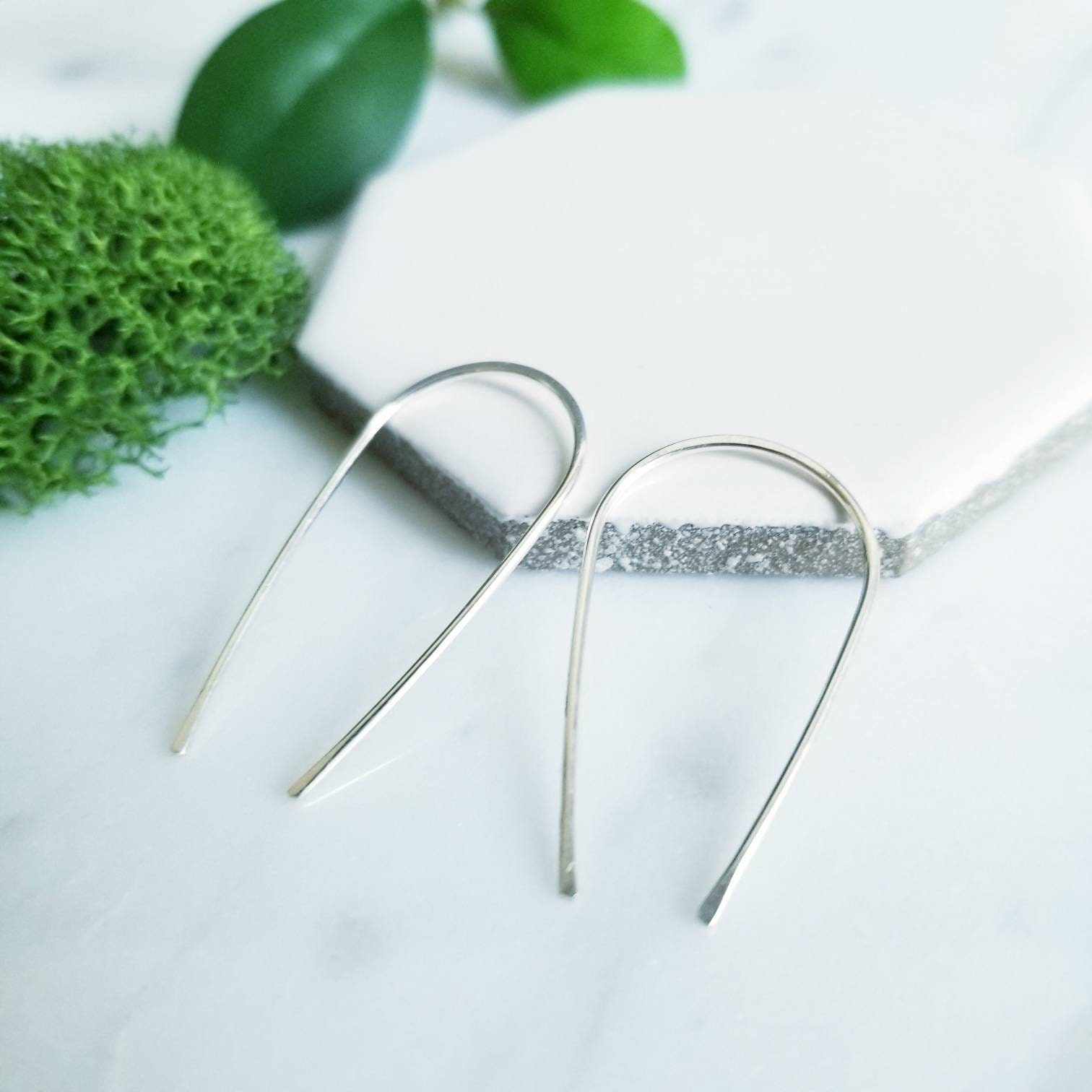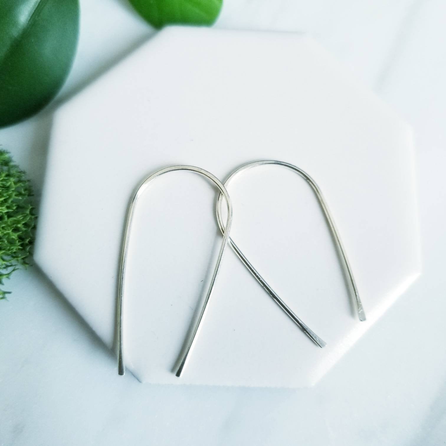 Curved into a gentle teardrop arc, hammered lightly in the center and at the tips.