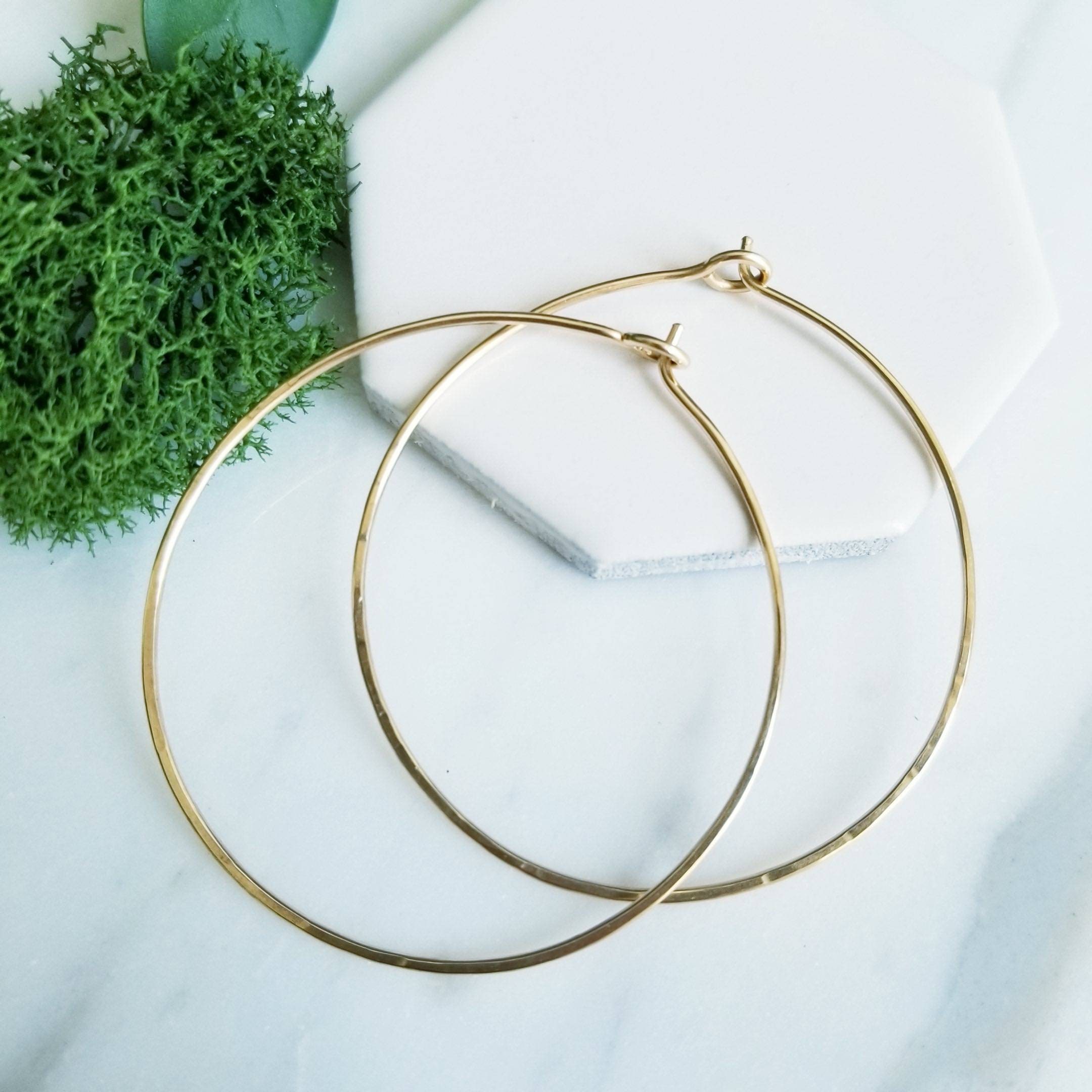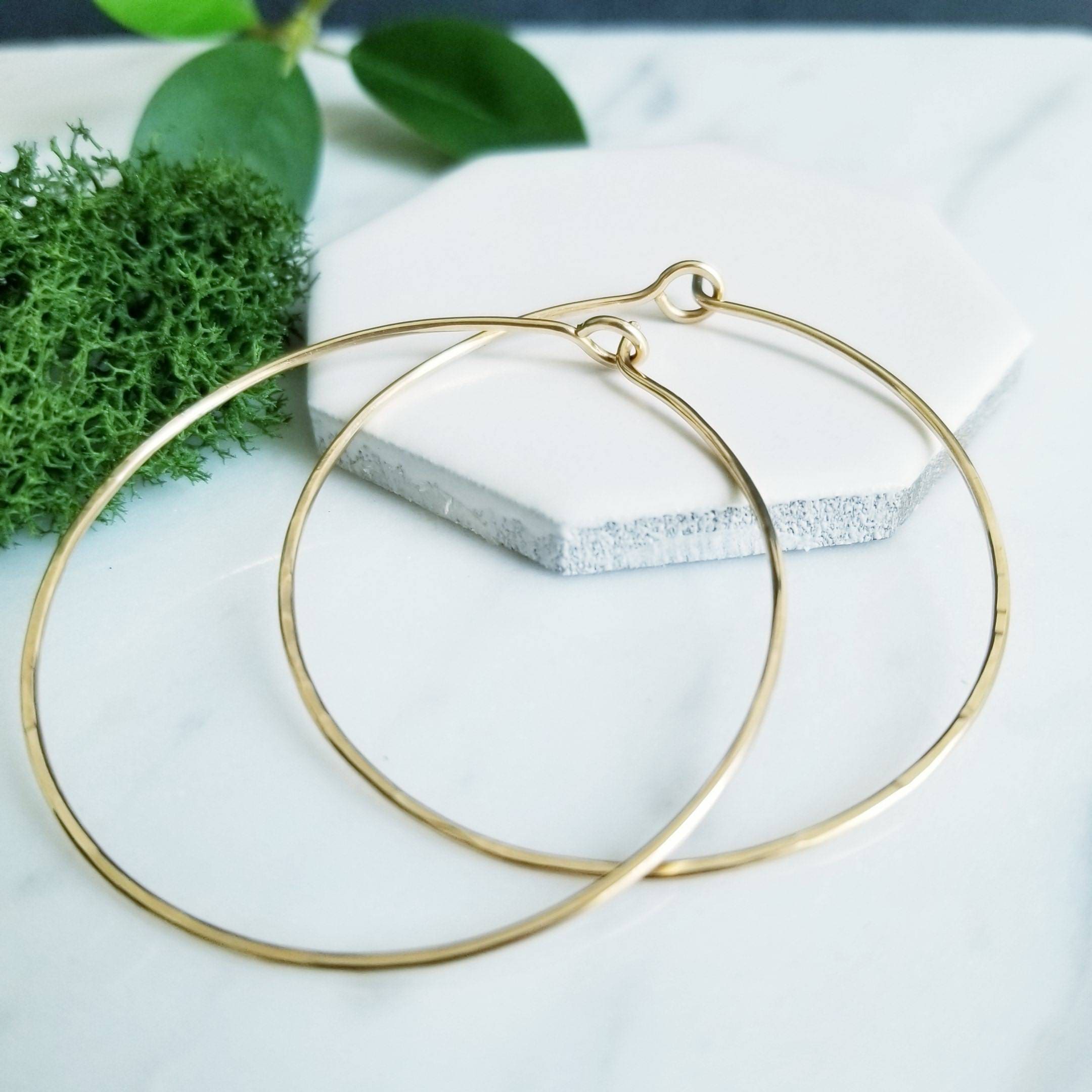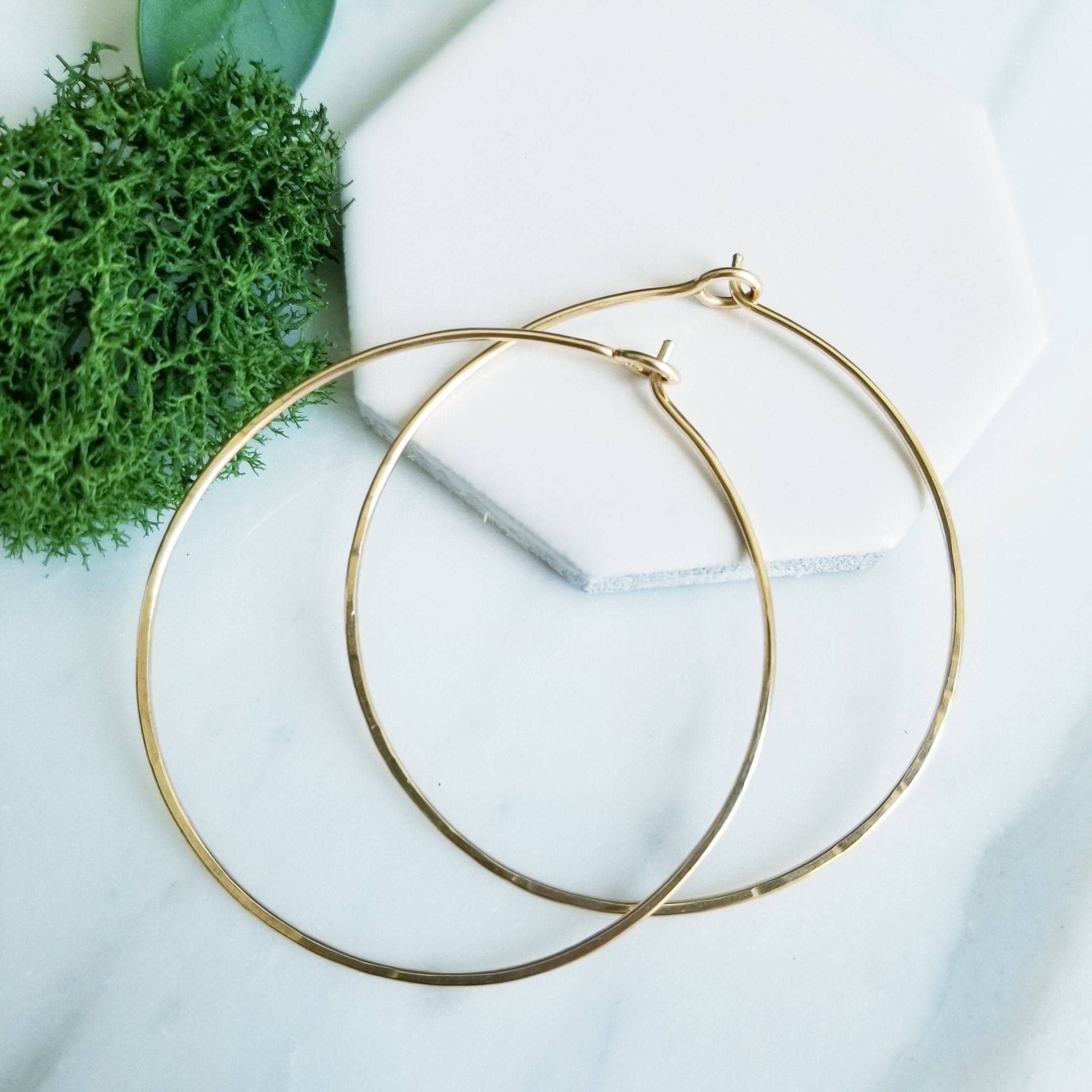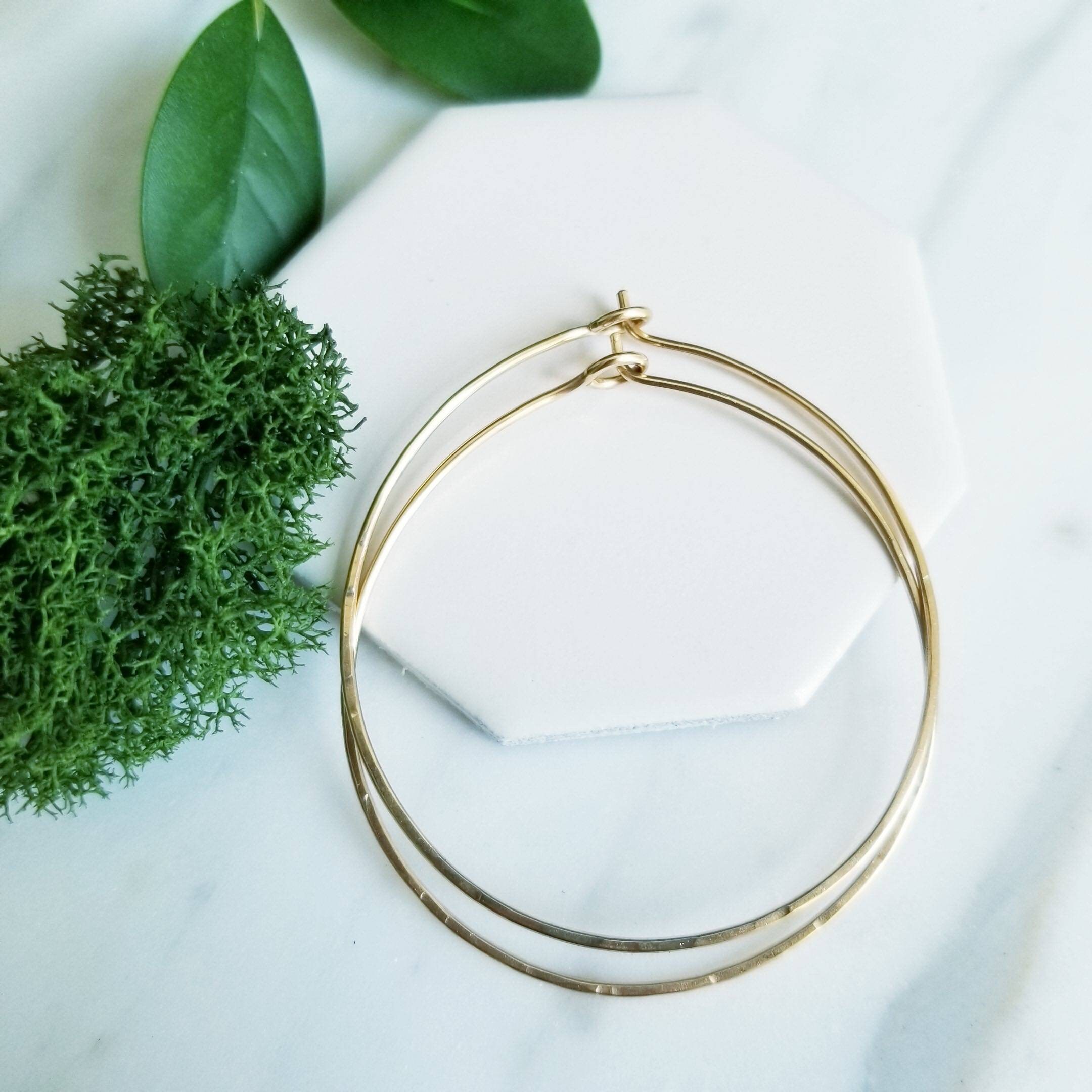 Forged Large 14K Gold Filled Hoop Earrings, made from thick wire, handmade by me.