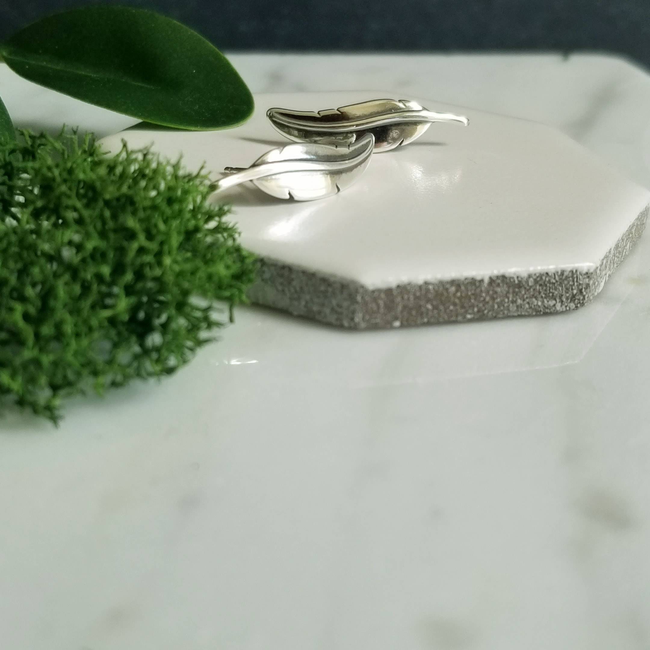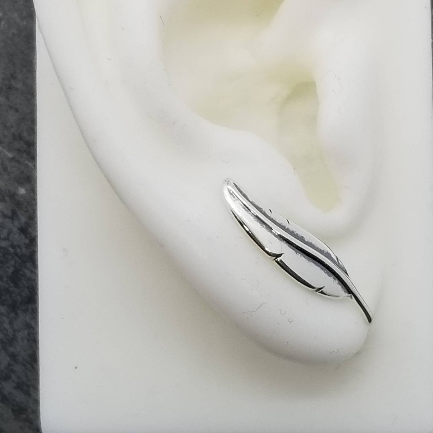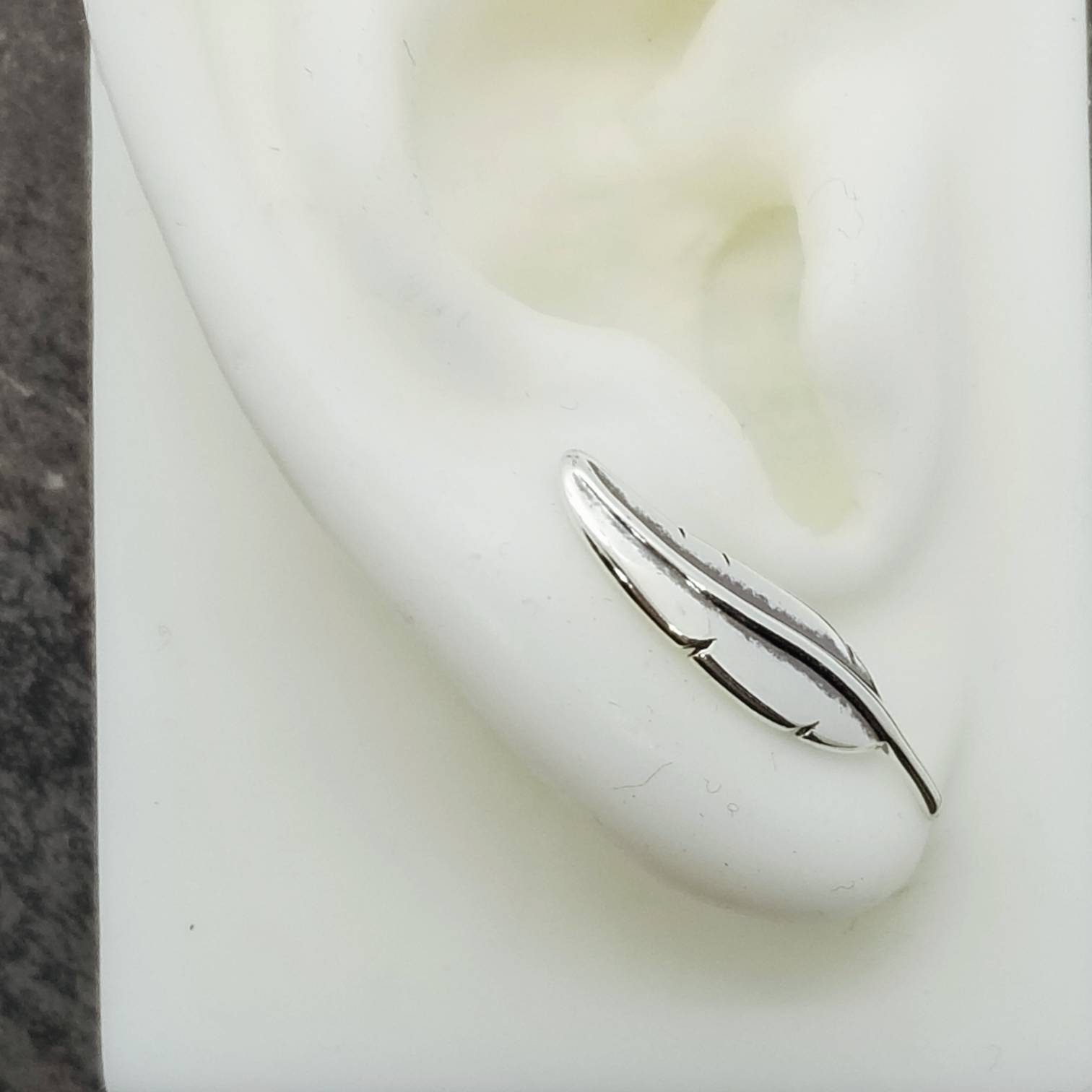 Minimalist sterling ear climbers, feather stud earrings.