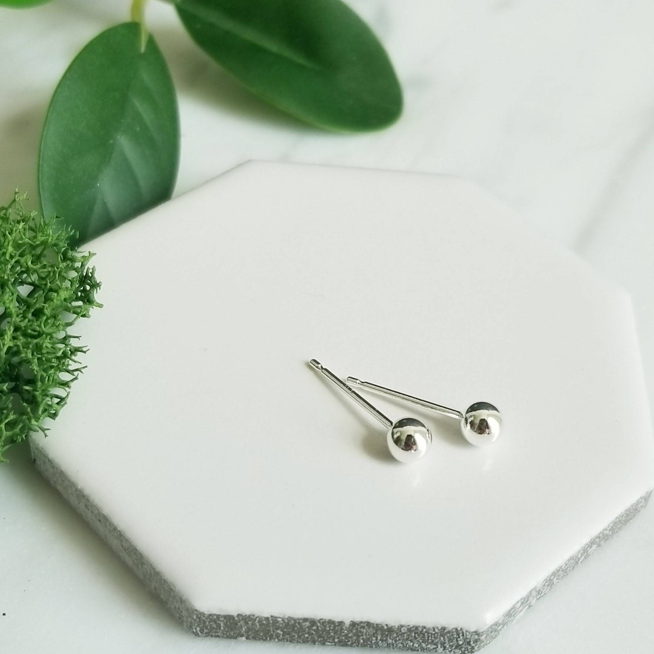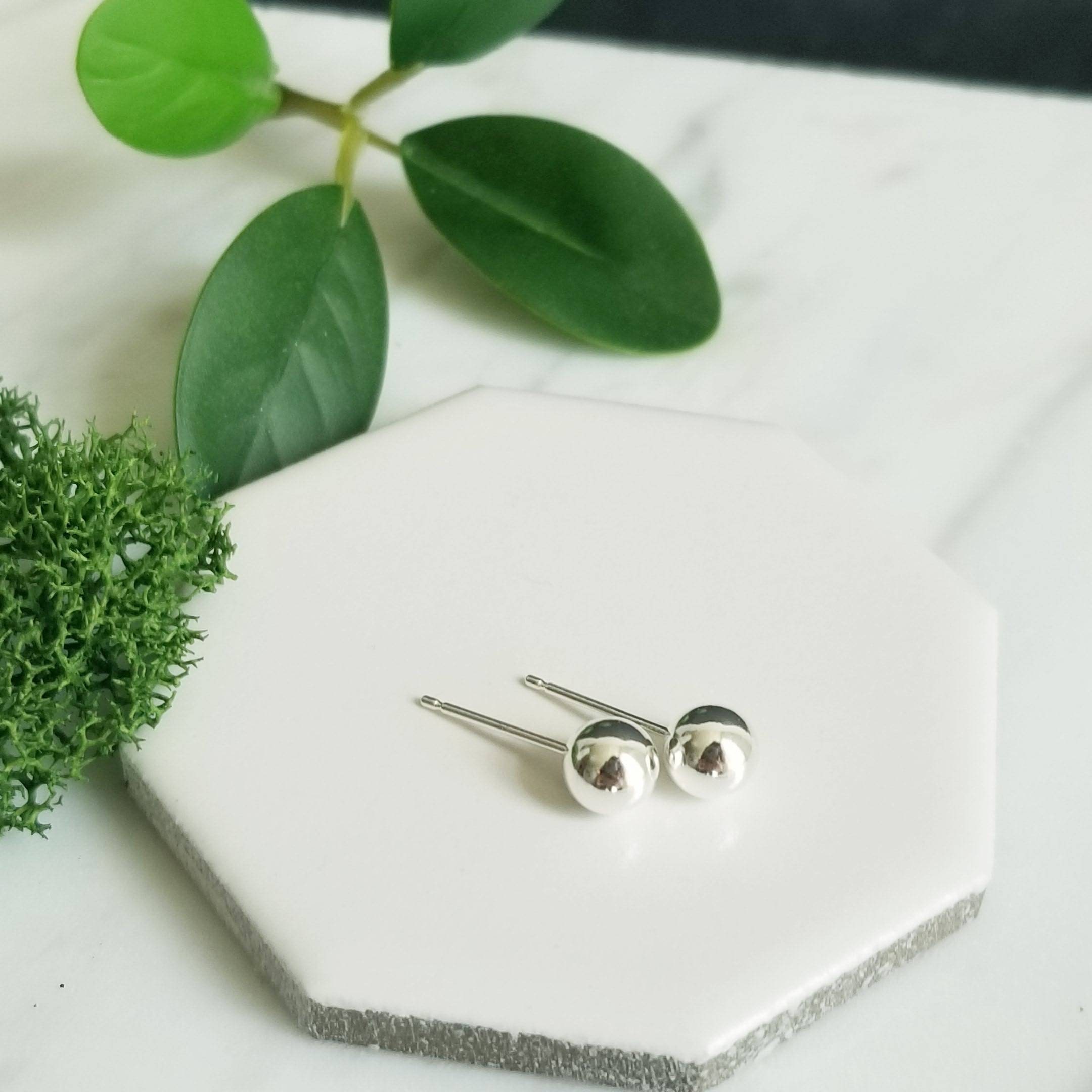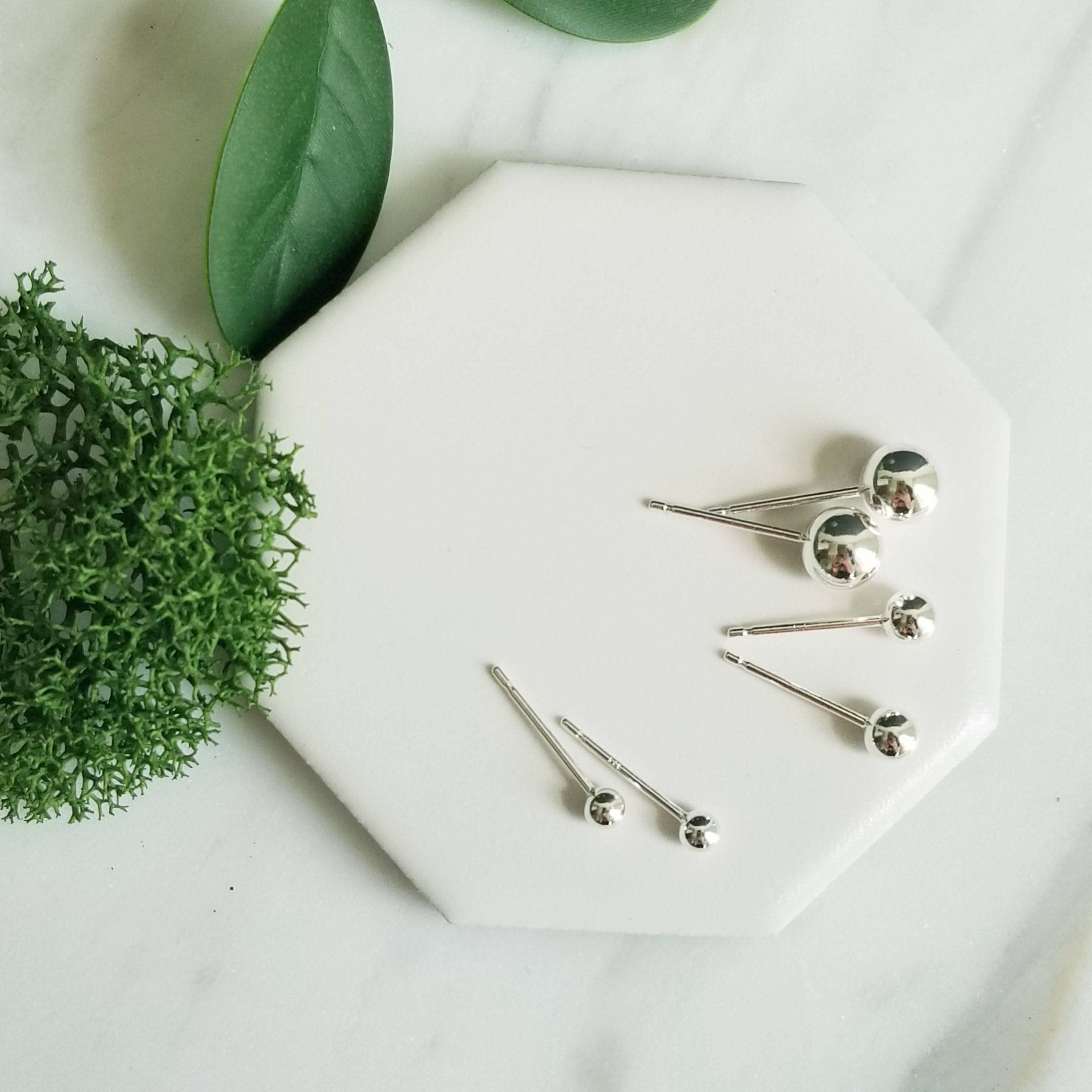 Sterling silver Round ball post earrings, sleek simple modern earrings available in 3 sizes. Lightweight.