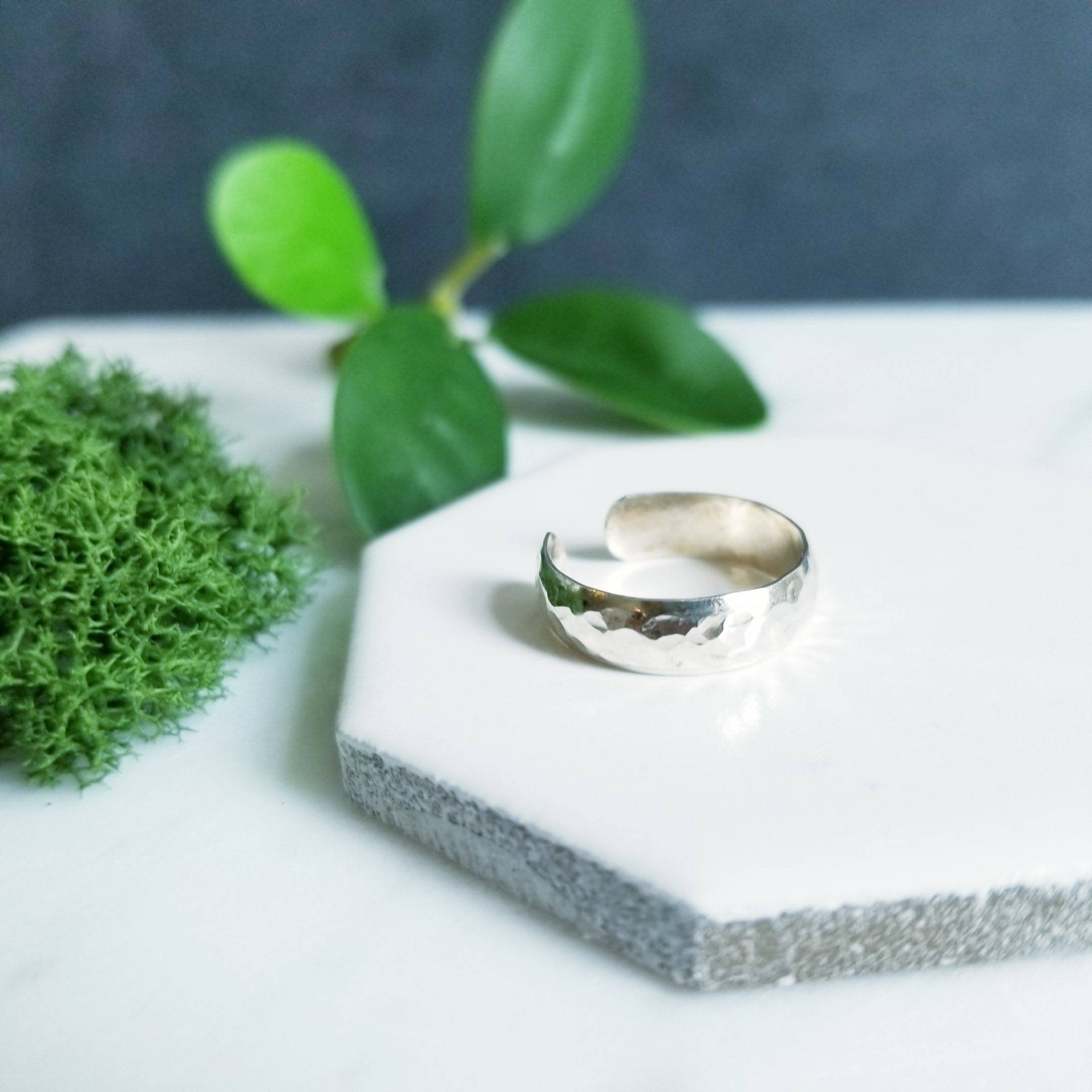 Sterling Silver Hammered Finish Toe Ring, Wide Sterling toe ring.