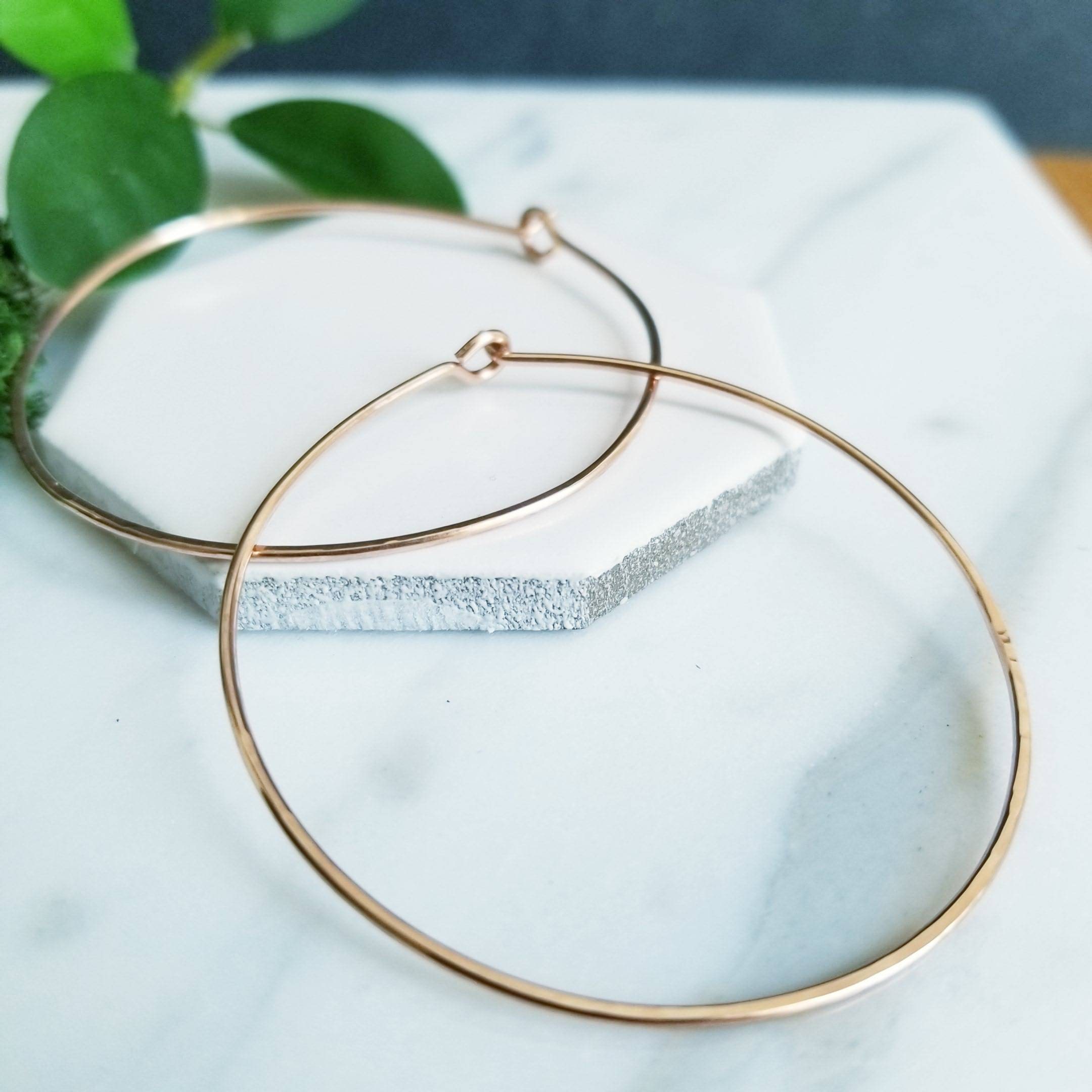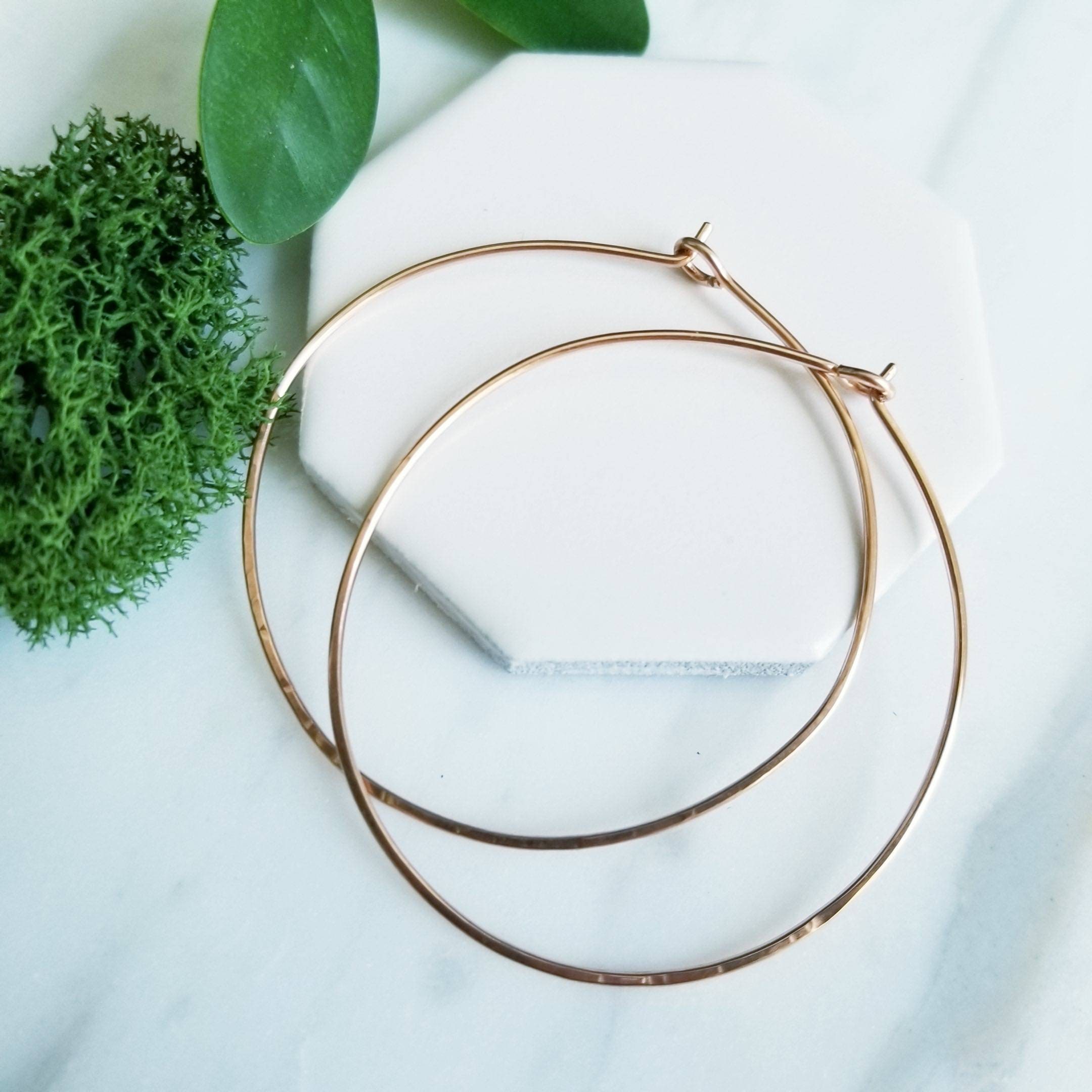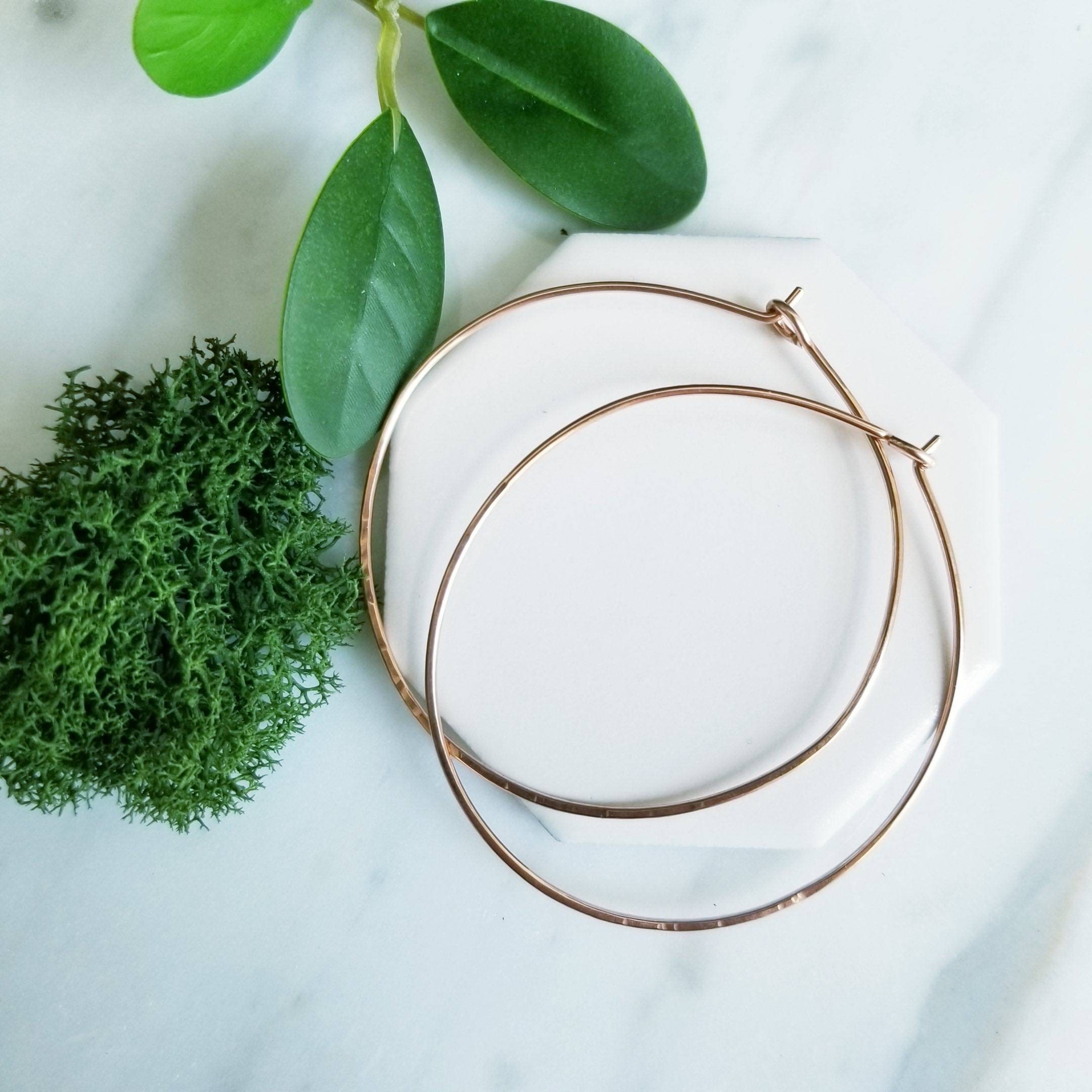Forged Large 14K Rose Gold Filled Hoop Earrings, made from thick wire, handmade by me in a soft pink gold.