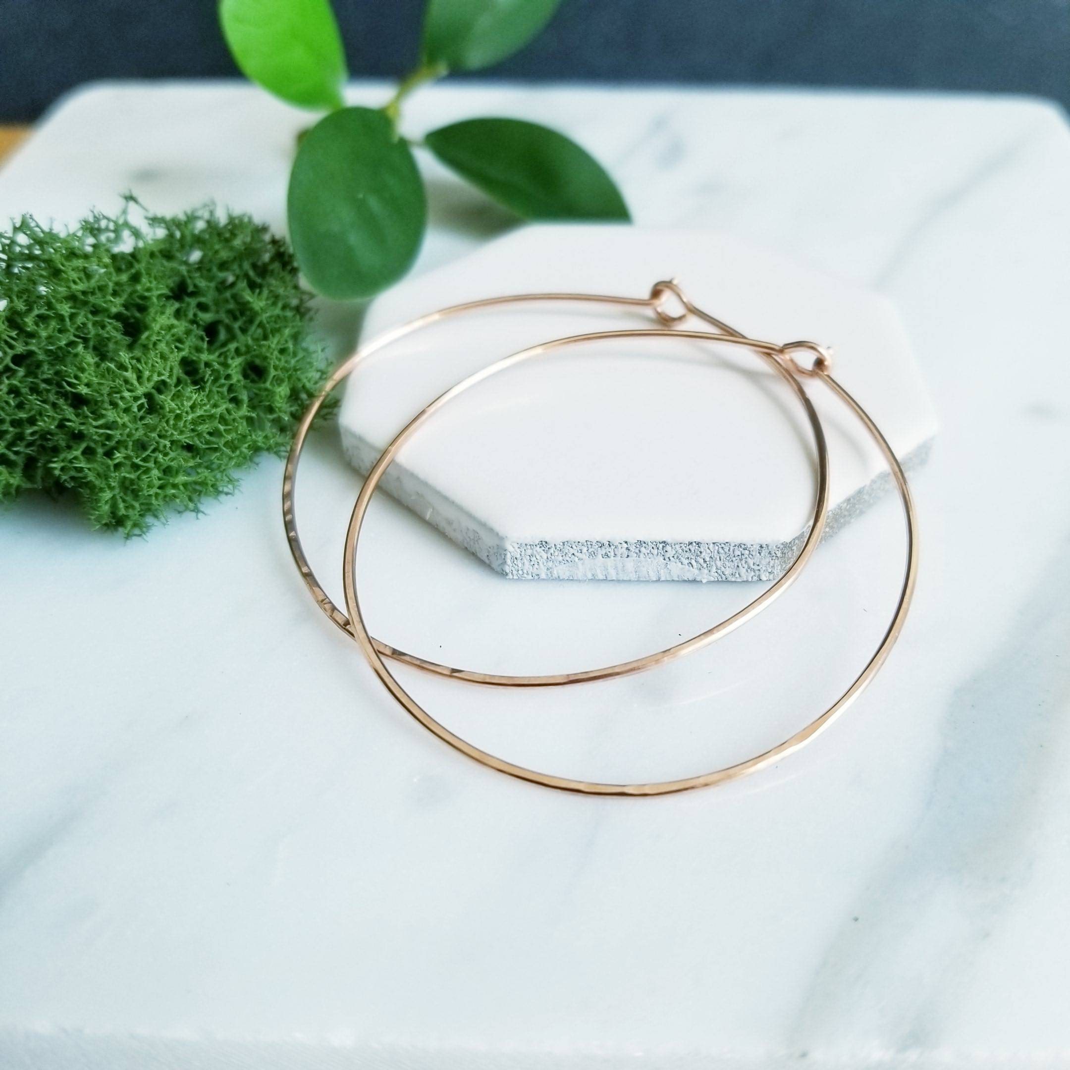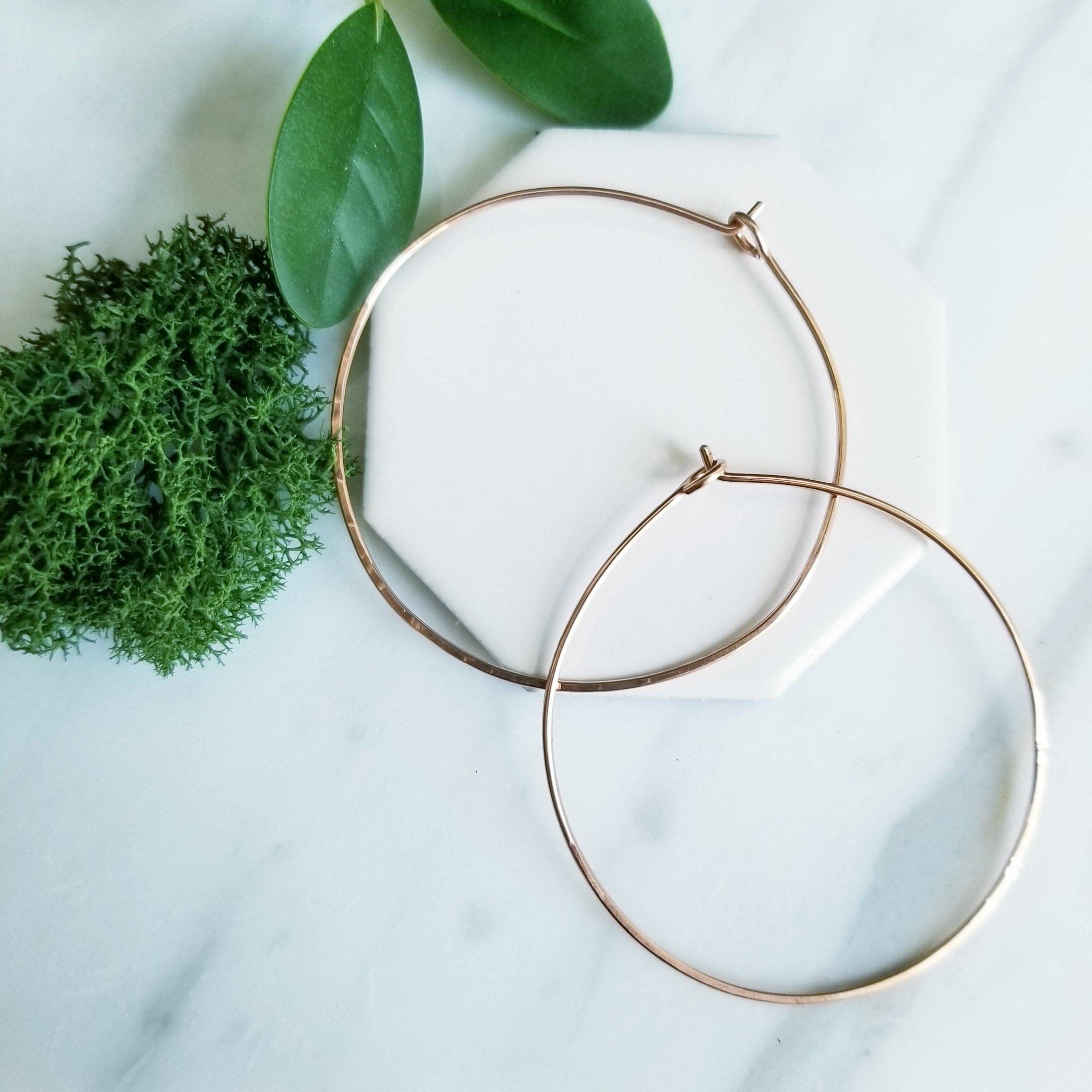I've forged these hoop earrings from 18 gauge 14K Rose GF wire. 18 gauge is thicker than normal ear wires of 20 gauge, If you have new piercings or find that thicker ear wires are not comfortable, I can make these from 20 gauge (they just won't look as 'chunky').