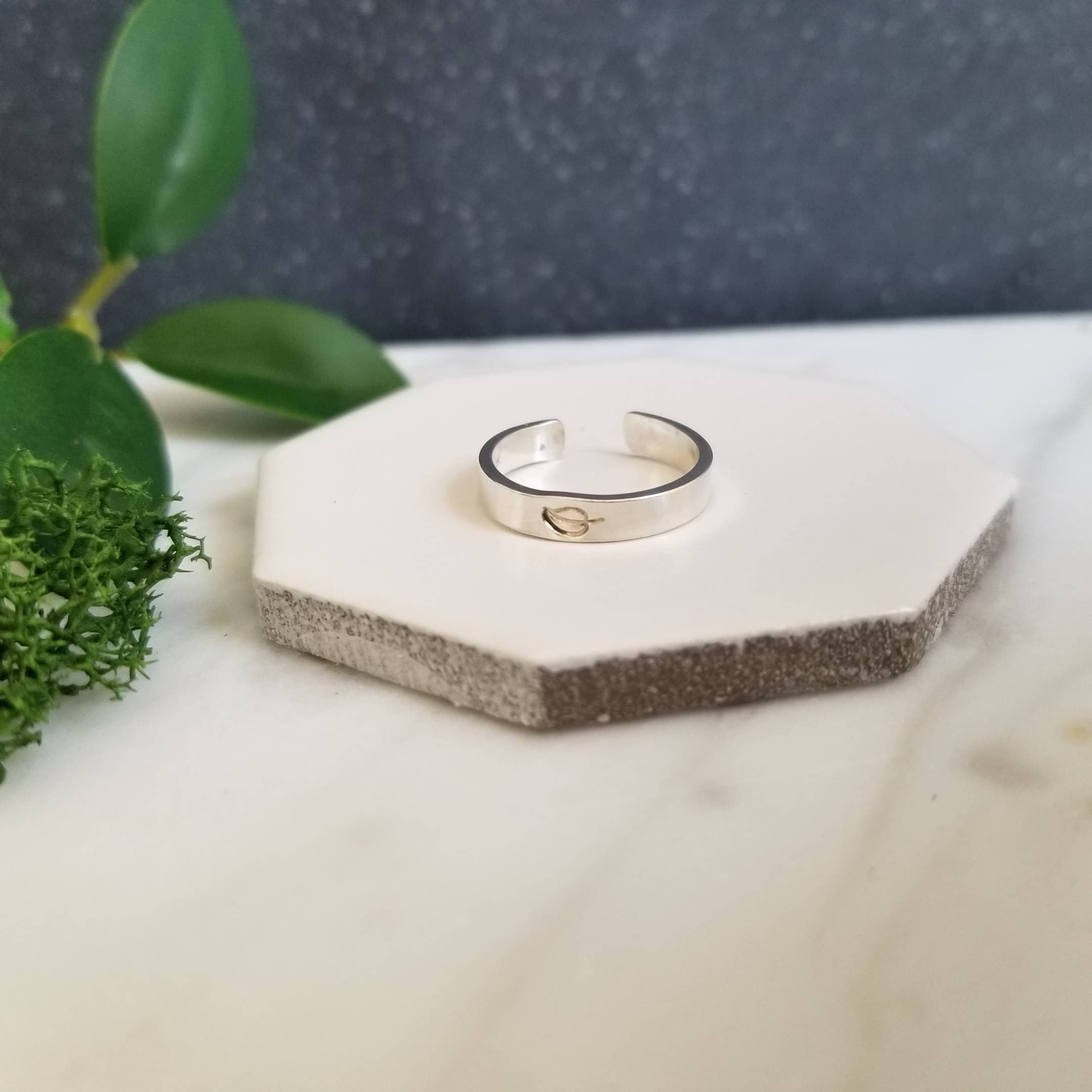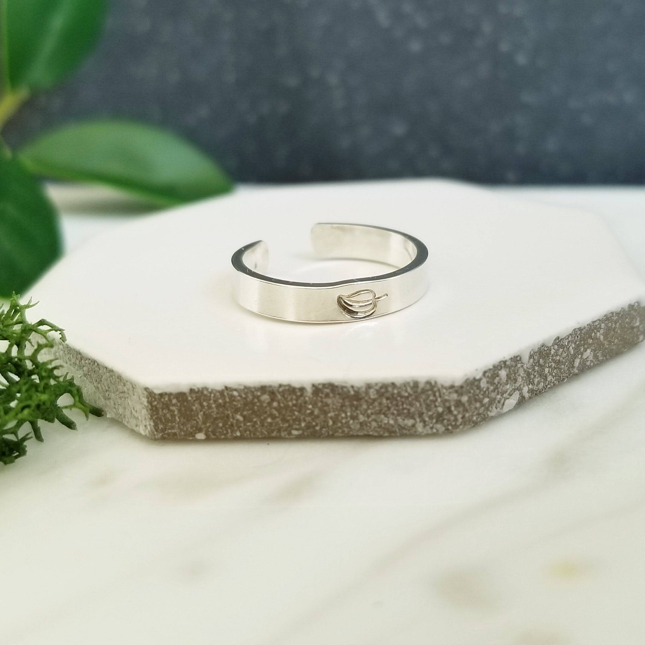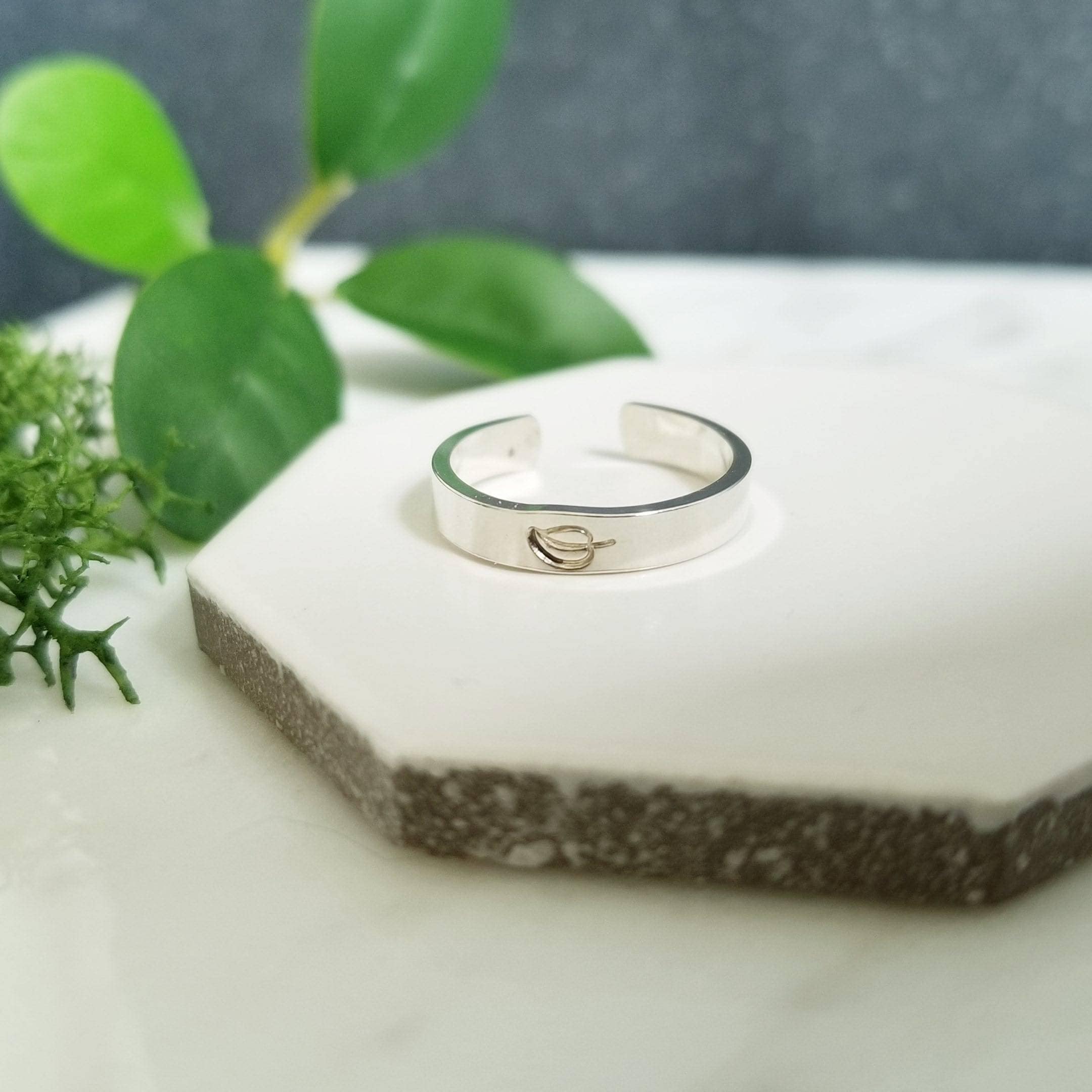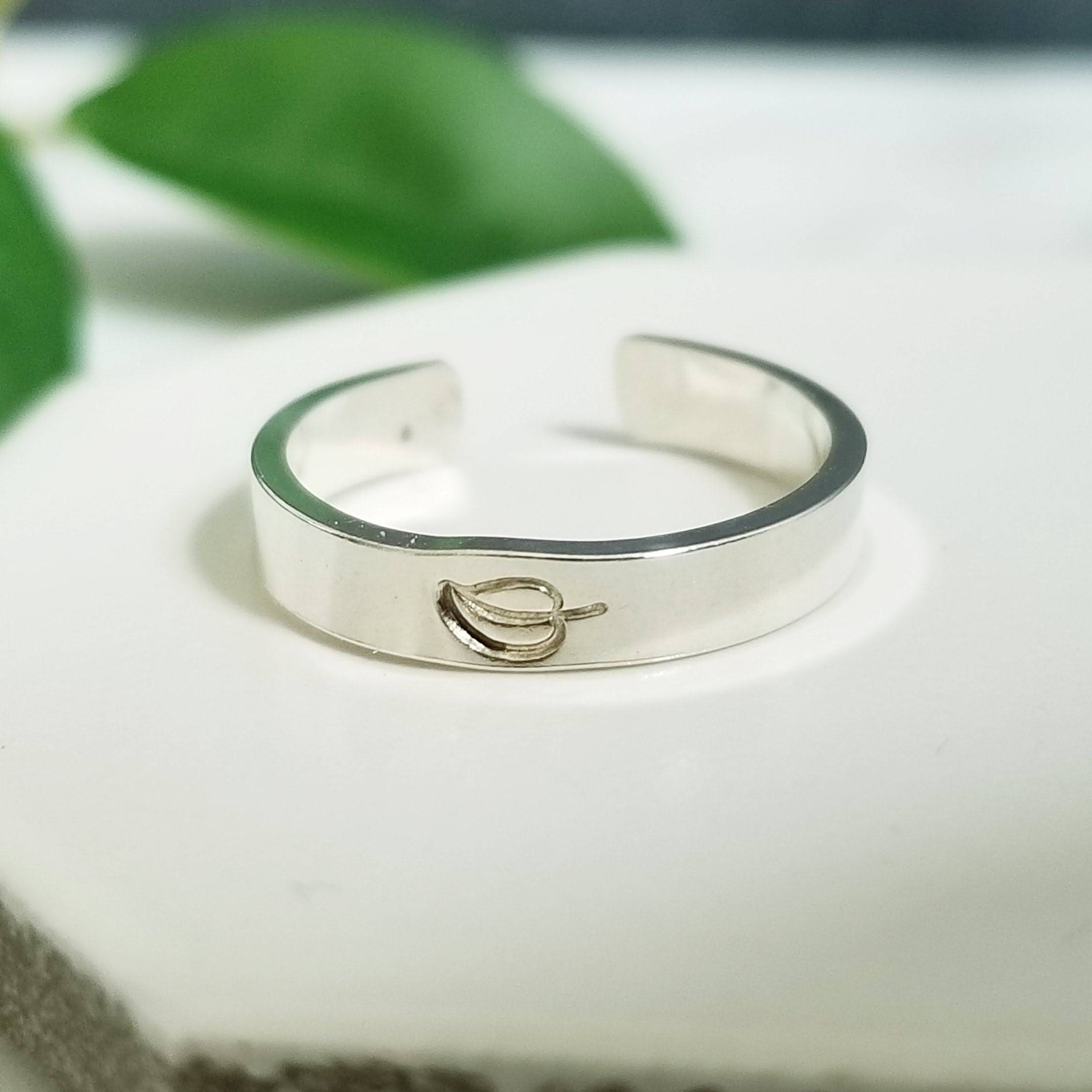 A single leaf is stamped on the front of this sterling silver toe ring.