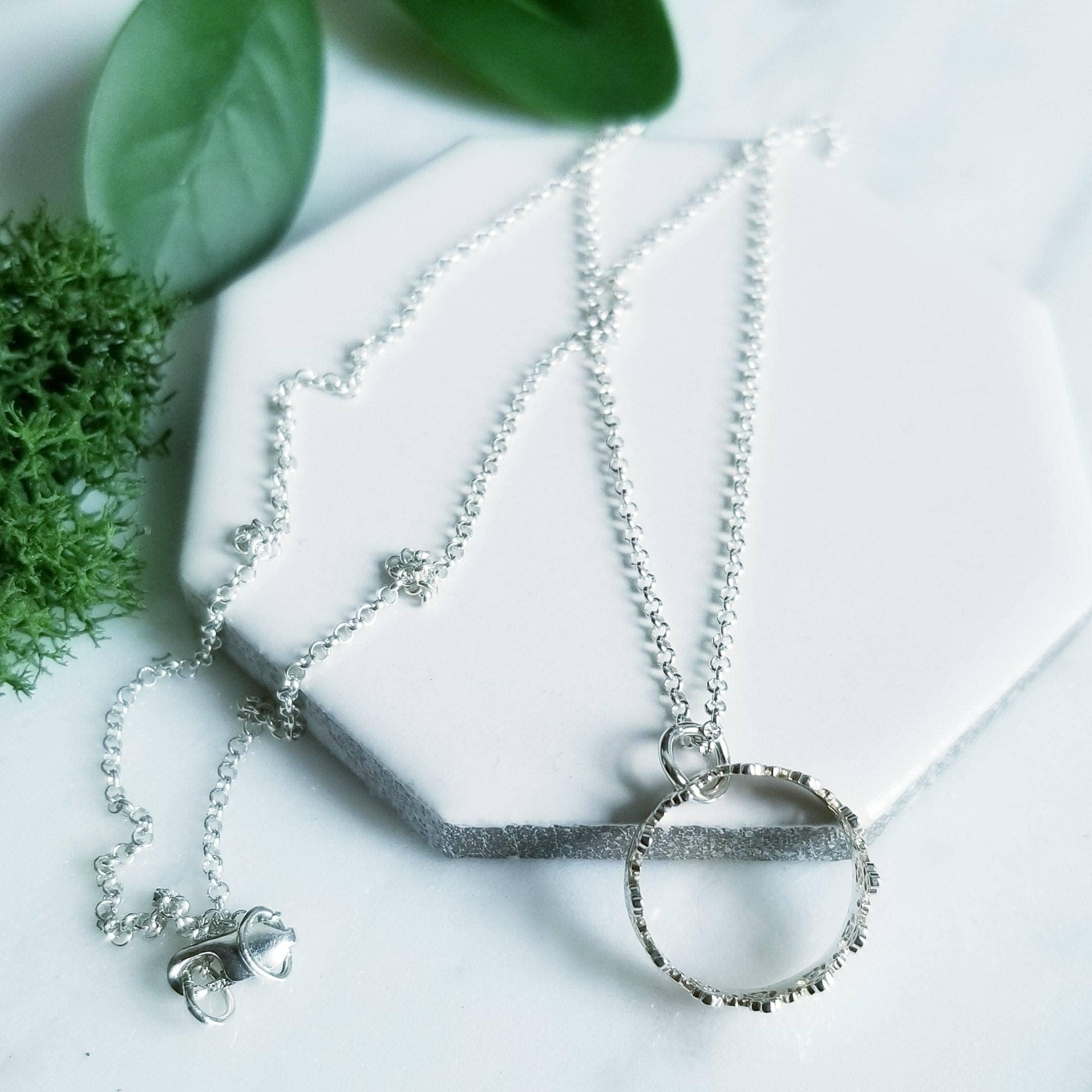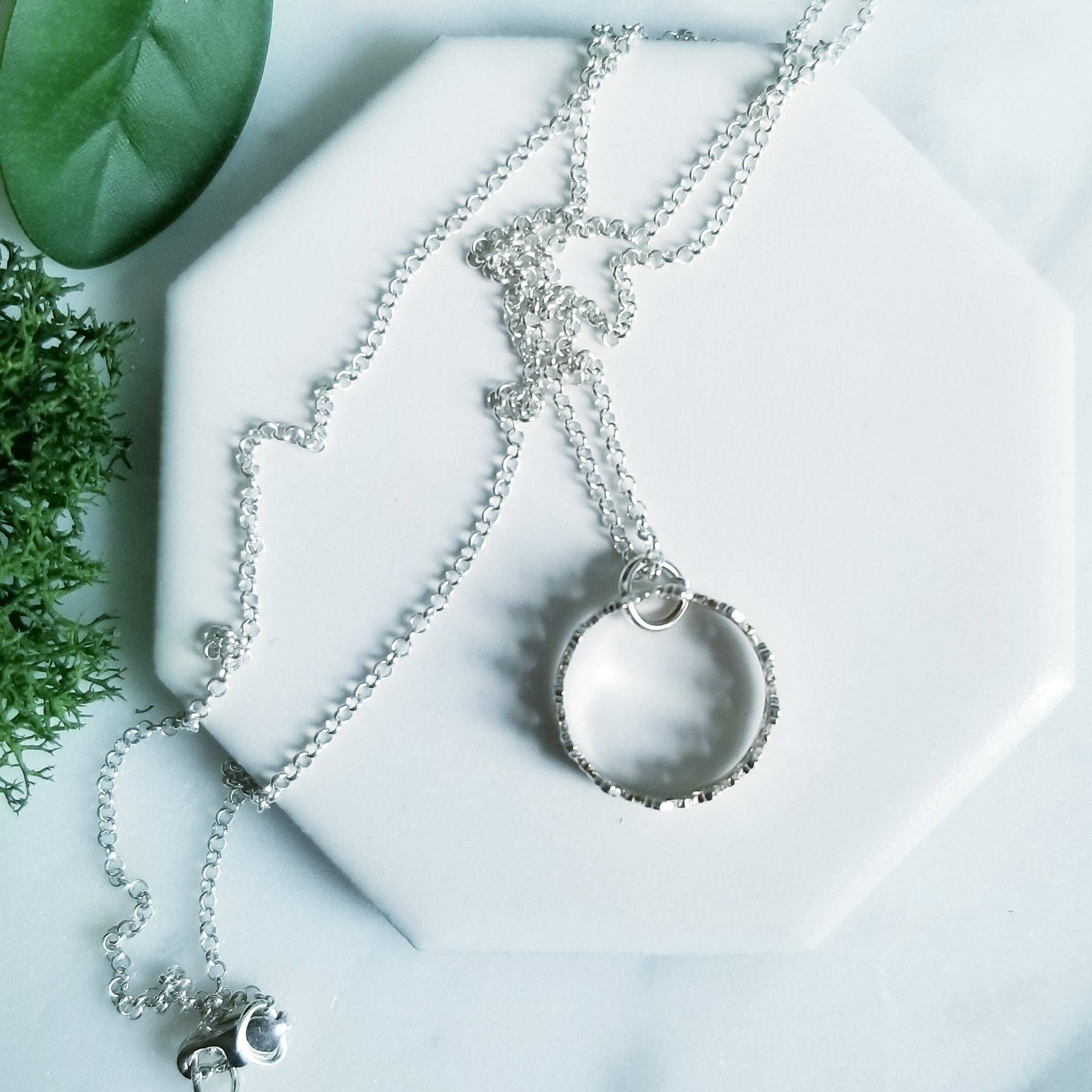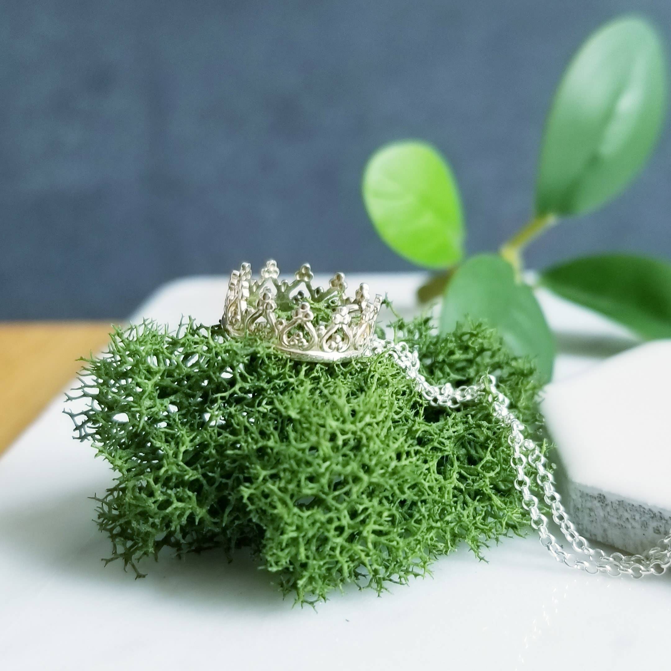 A small open crown is suspended like a charm from a light sterling silver chain.