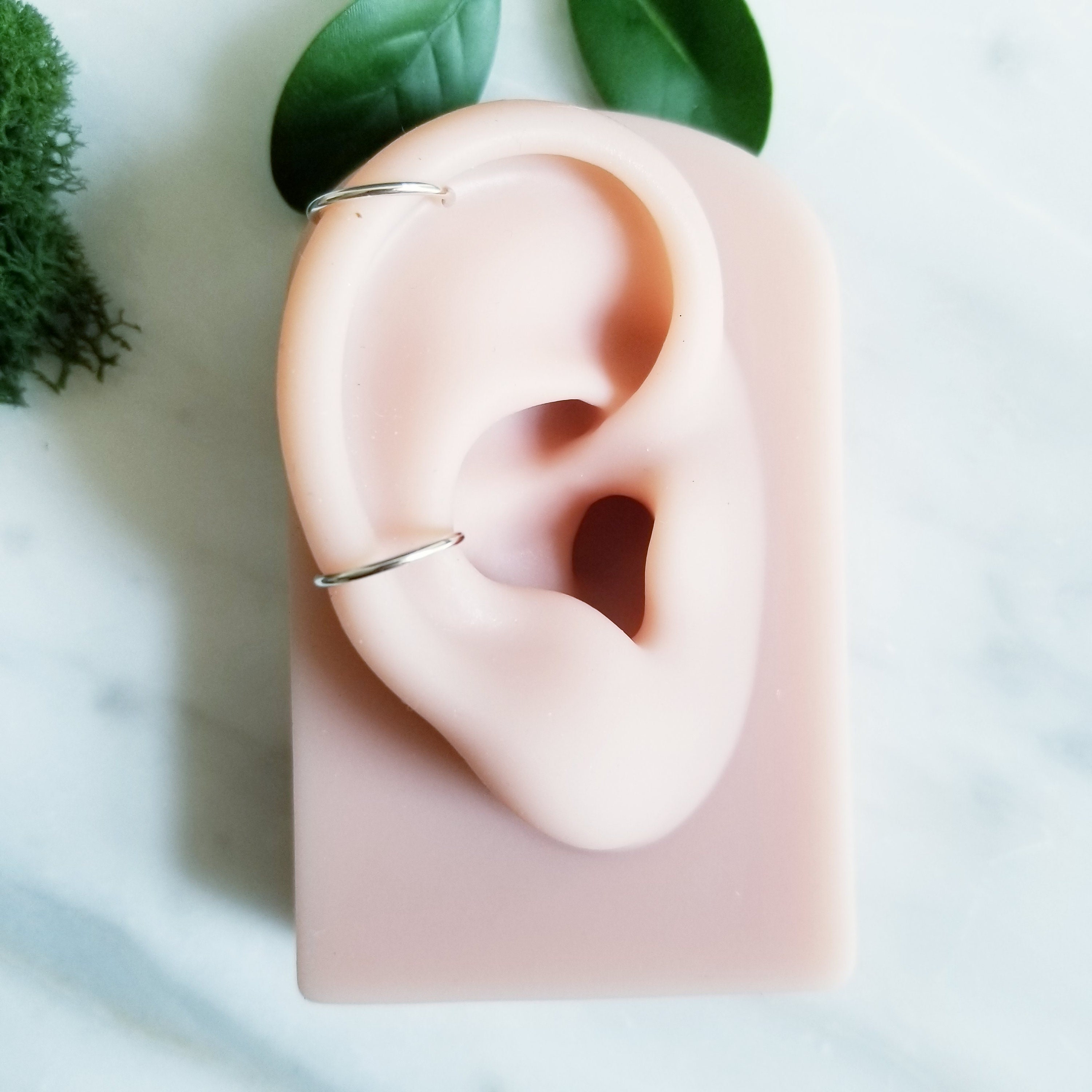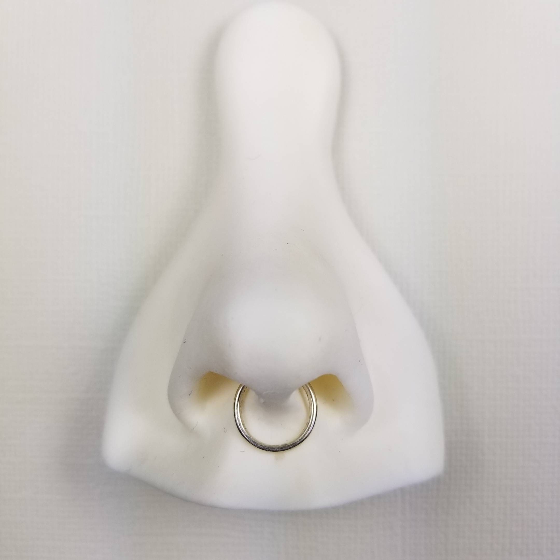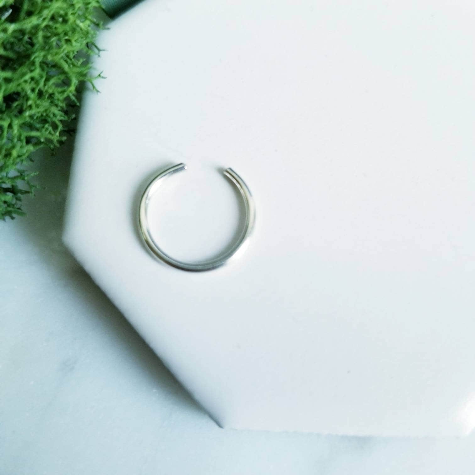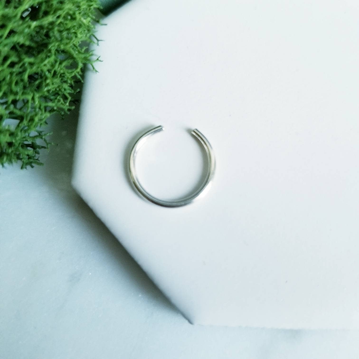Can also be slid onto the side of your nose as a faux hoop piercing. Squeeze gently to size.