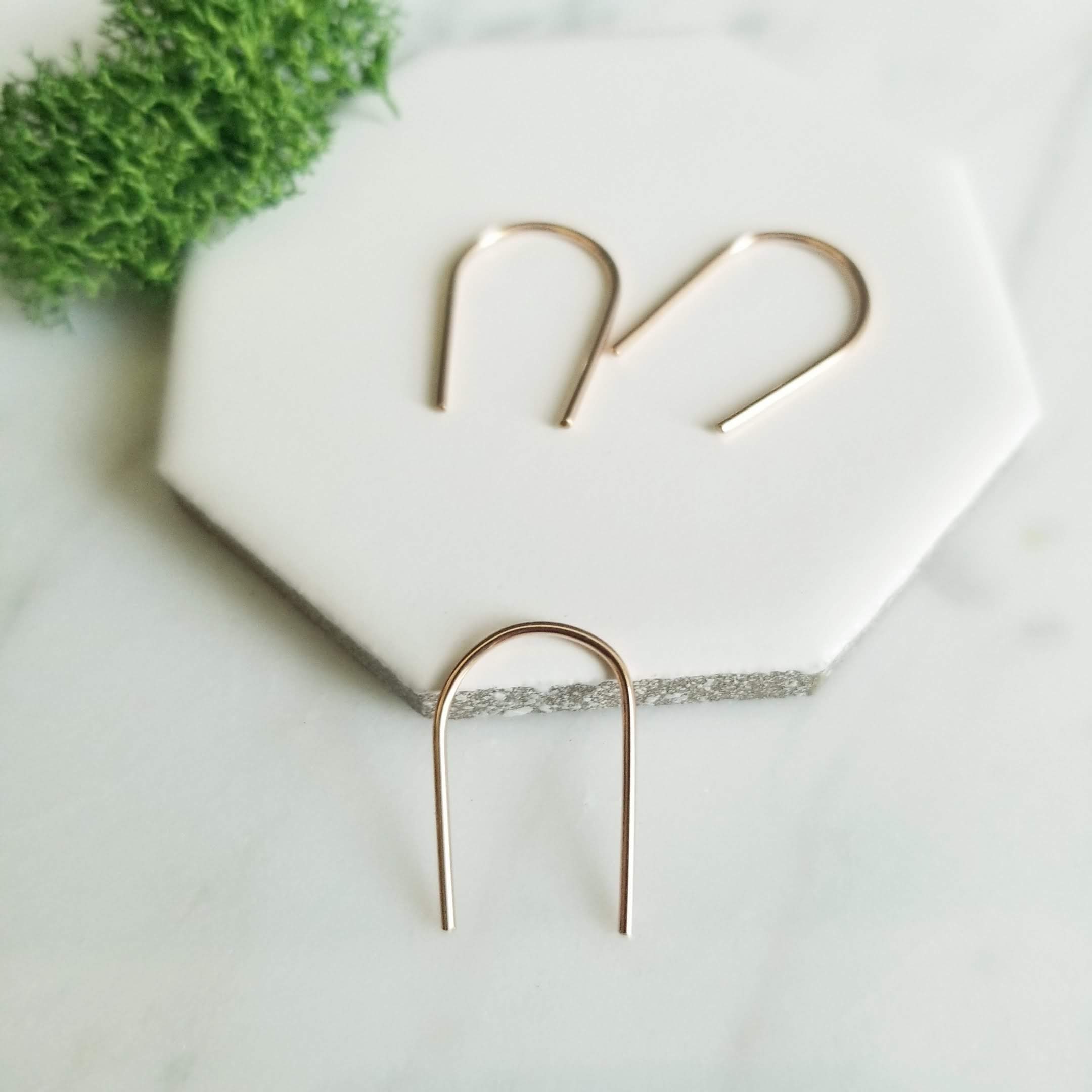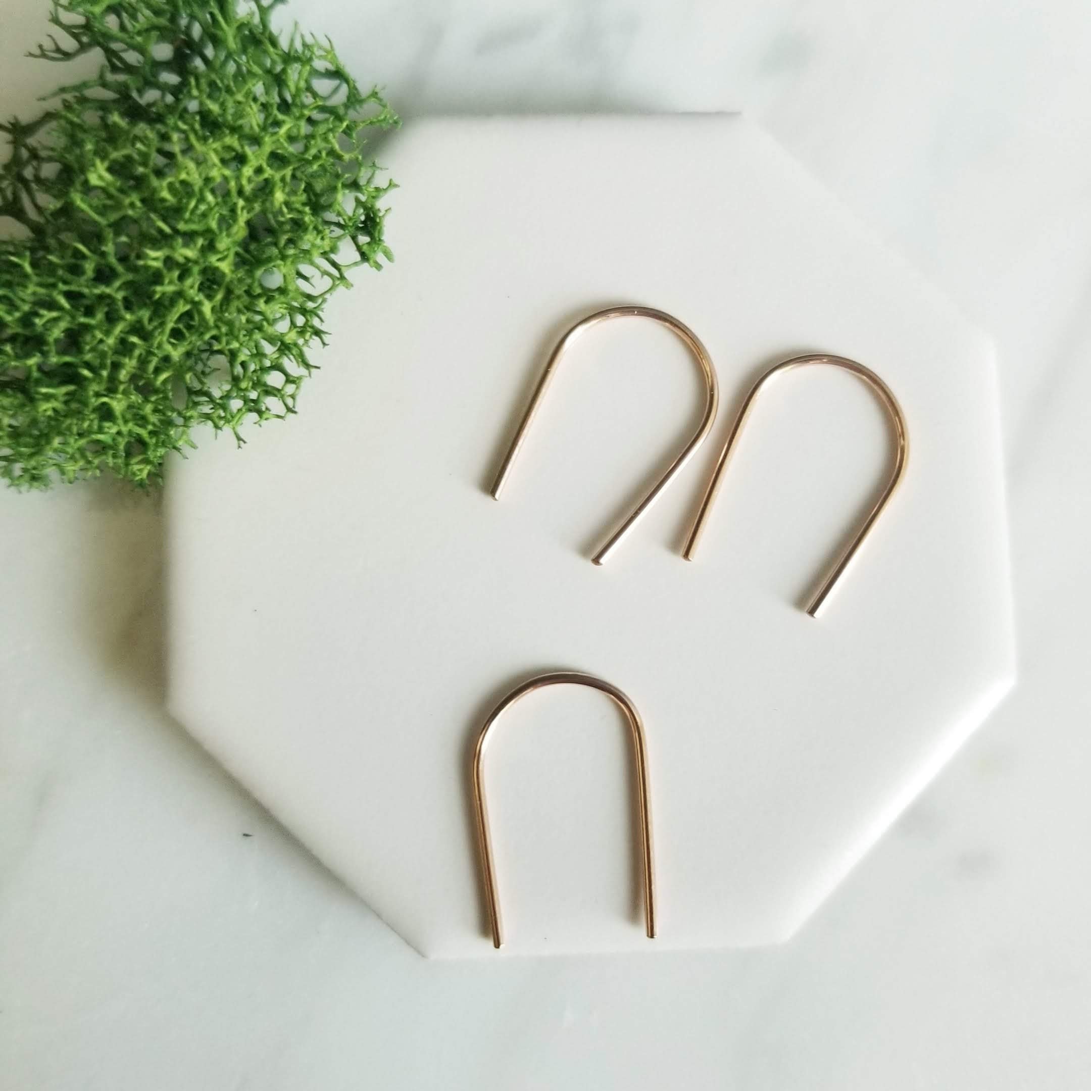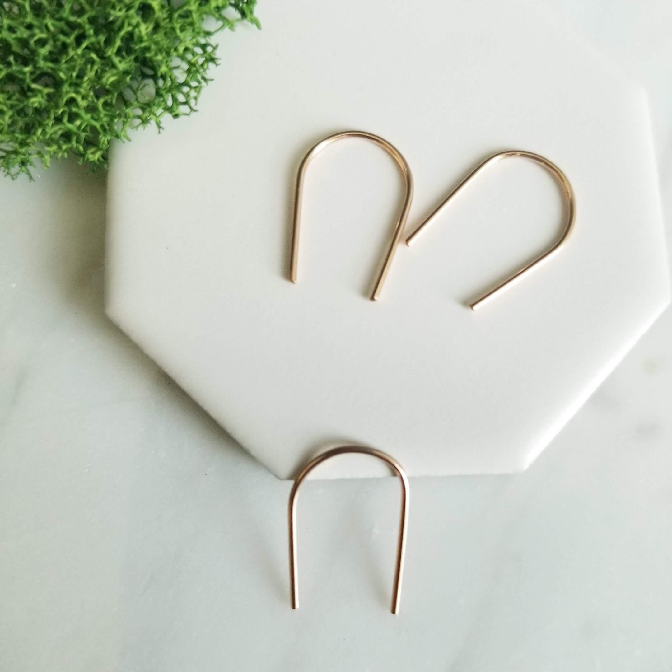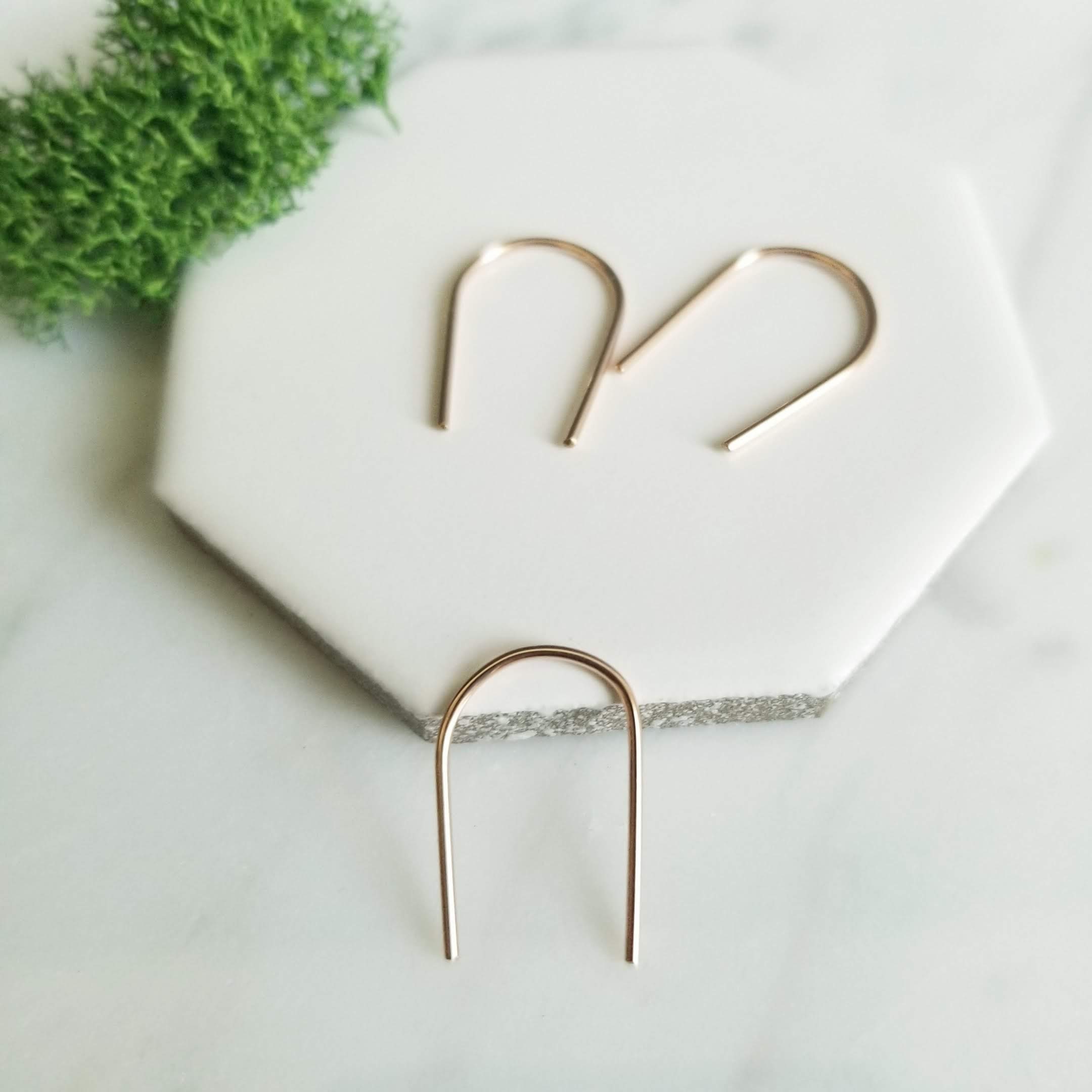 Curved into a gentle U shaped arc, minimalist open hoops.