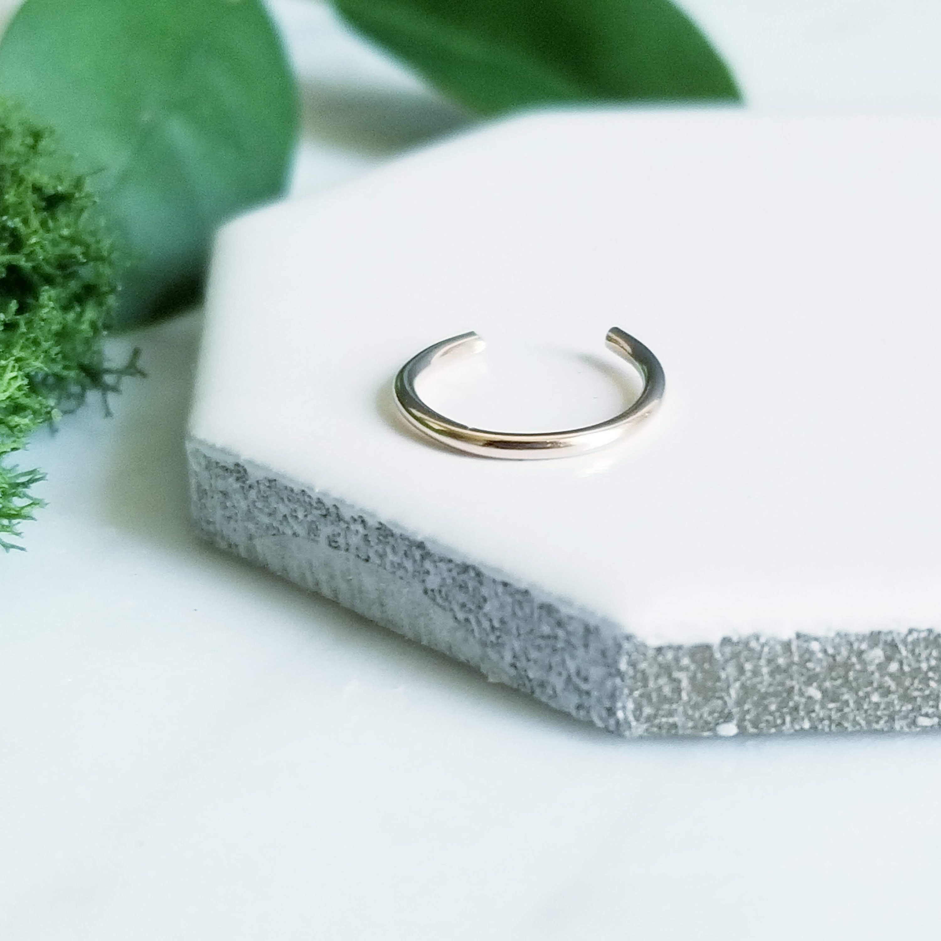 Can also be slid onto the side of your nose as a faux hoop piercing. Squeeze gently to size.